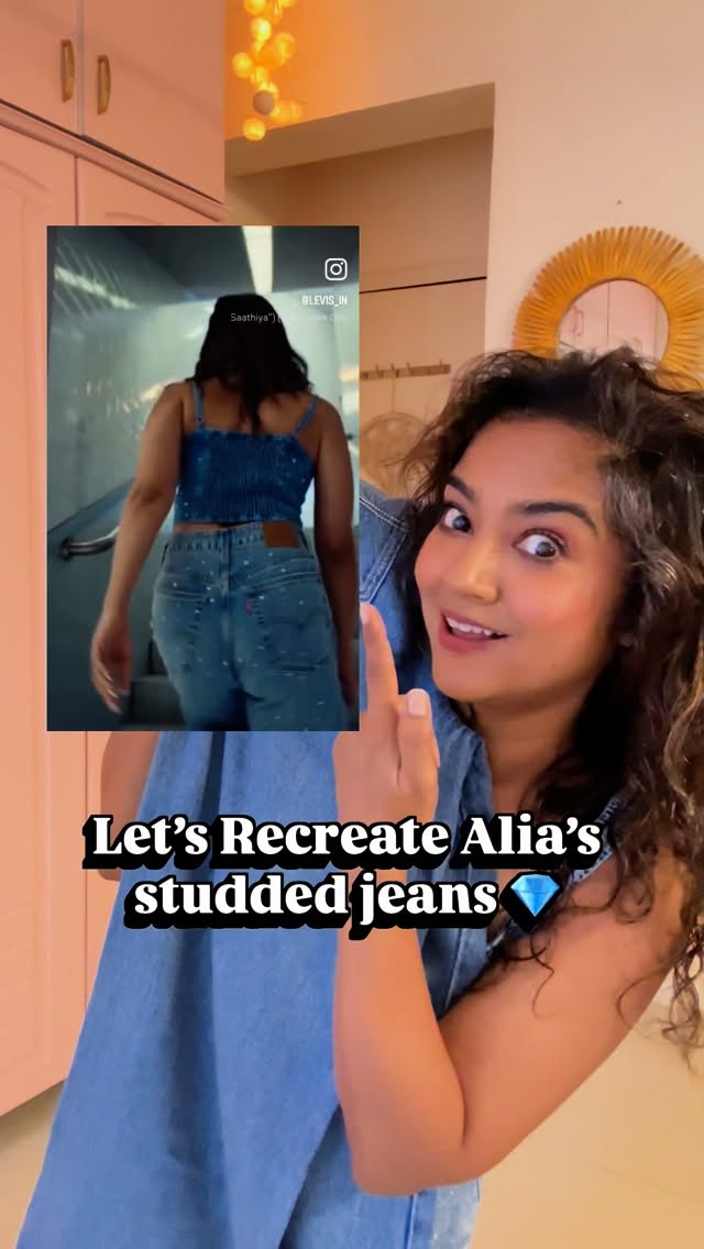 Do you love this 💎💎💎💎💎 . . . . [diy, art, craft, creative, upcycling, upcycle, sustainable, sustainability, handmade outfit, diy fashion, fashion under budget, repurpose, rhinestone denims, alia Bhatt, Levi’s jeans] . . . . . #diy #art #artist #upcycle #repurpose #sustainability #fashion #creative #reelsinstagram #explore #explorepage #ootd #diyfashion #levis #aliabhatt #rhinestones