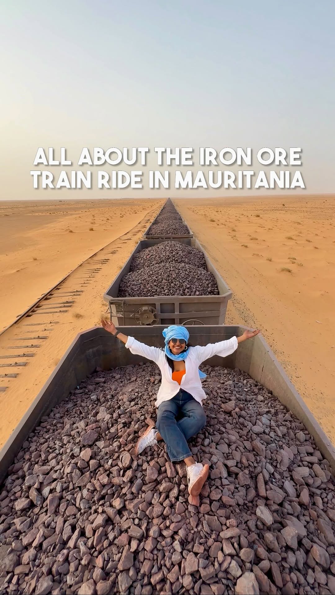 All about the most dangerous train ride in the world - The iron ore train in Mauritania ⬇️ Once I got on the iron ore train, it finally dawned on me why people call it the world’s deadliest train ride! We spent 18 hours on top of these coaches filled with iron ore. With no roof over our heads, no bed, and no washroom, and the extreme saharan heat was a cherry on top. The train goes along the Mauritanian railway, which is 430 miles long, carrying over 22,000 tonnes of iron ore! The train is not really meant to carry people, so it has no proper stops. @monkey.inc and I boarded the train in Zourat and got down at the last spot Nuadibhu. You have to bring food, water, maybe a blanked to help you survive these 18 hours. And if things go wrong, no one can or will help you. Luckily we didn’t do it alone, we got help from our guide - Sidamar, who was a big help all the way, from knowing when to hop on the train, to bringing food and water and making sure we’re alright. But at some point in midnight, the weather became pleasant and it started drizzling, and at that moment I was crying tears of joy! Even though this journey was extreme, I felt a sense of happiness that I cannot describe in words. Visiting Mauritania in itself was eye opening in many ways. This country is very different from any other place I have been to. I will be sharing detailed stories from Mauritania, stay tuned!! Do you have any questions about the Iron Ore Train Ride? Let me know in the comments! [Travel, offbeat, Indian travel bloggers, Sahara, Africa, Mauritania, adventure, female travel freaks]