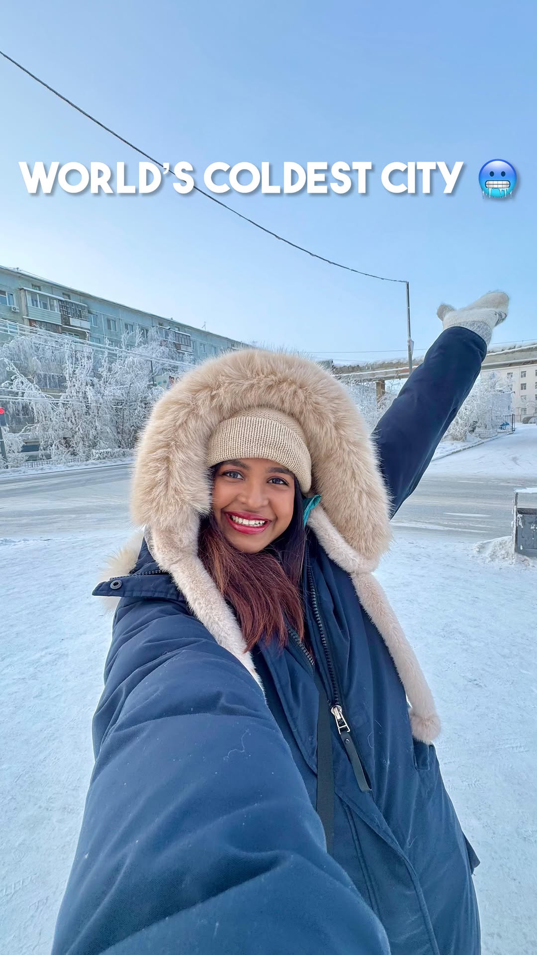 ⚠️Imagine living inside your freezer your whole life!! Freezers usually only go upto -18°C, but this city is even colder! This is not fiction, but reality for 300,000 people who live in the coldest city in the world 🌏 🥶It’s -50°C and my hair is frozen! 🥶The extreme cold hurts your bones 🥶Water bubbles instantly freeze into crystals 🥶Wet Clothes never dry, they just freeze 🥶And fridge? Well the whole city is your fridge! This is📍Yakutsk City in Russia 🇷🇺 You might think that people have miserable lives here, but in reality they are one of the happiest! Our guide was so glad two girls (@monkey.inc and I) from India came to all the way to Yakutsk! He says he’s sure we are the first girls from India to have come here! 🔥 The coldest city surprising had the warmed people! There are so many stories I want to share about Yakutsk, Stay tuned for insider secrets from Yakutsk! [Yakutsk, Sakha Republic, Russia, Siberia, Yakutia, Oymyakon, Coldest City in the world]