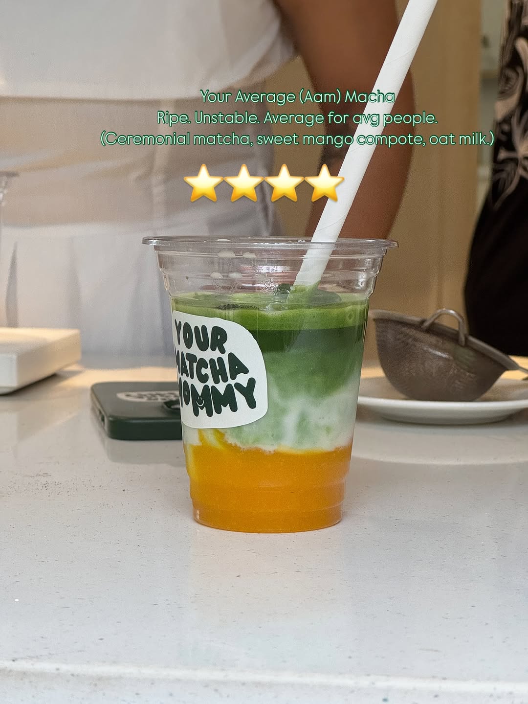 🌟🌟🌟🌟Review: Your Average (Aam) Macha 🥭💚 Ripe, reckless, and riding the fine line between genius and just okay — this one’s for the gloriously average among us. Ceremonial matcha swirled with sweet mango compote and oat milk? It’s giving tropical identity crisis, and I love it. A sip of stability with hints of drama — basically, me in beverage form. 🍵🥭✨ @mezamematchaclub #AamNotSorry #MatchaWithMangoMood #AverageIsExtra #MachaButMakeItAam #TropicalTantrum #SipSipStereotype #OatMilkOverachiever #DesiDrinkDiaries #MangoMeltdown #UnstableButYum