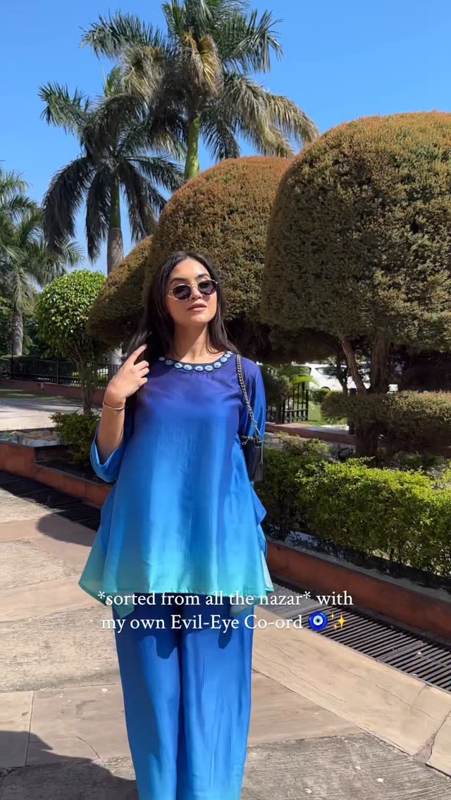 Co-ord you didn’t know you needed 🧿🫶🏻 . . This one’s special in so many ways 💕 check this gorgeous label out @houseofanai 🫶🏻 . . . . . . . . . Evil eye co-ord set, modern classy sets for festive season, wedding season, co-ord sets, suit sets, casual sets, diwali co-ords, bride to be, 2025 bride, blue co-ord set, ombre suit sets