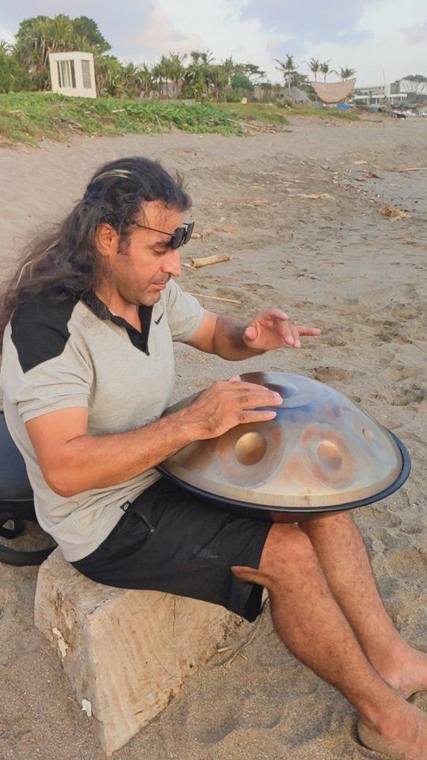 This was without a doubt one of the best sunset moments during my Bali Adventure with @tripsntales 😍 When I was casually strolling along the beach and accidentally ran into @sirvan.sadeghi who was happily playing his handpan. On interacting with him, I got to know that he is settled in Bali now and makes and sells Handpans and also teaches how to play them. So if learning a new instrument is on your agenda, do get in touch with him, and learn something new during your Bali trip. Listening to @sirvan.sadeghi play the handpan while witnessing the sunset was nothing short of a meditative experience on the beach. Have you encountered something like this as well ? At the places where you least expect them ? #EatTravelLiveRepeat #handpan #handpanmusic #handpanplayer #balivacation #balisunsets #handpanmaker #handpandrum #handpansound #sunsetview #sunsetvibes #baliguide #batubeling #wonderfulindonesia #balireels #balitravelguide #musicteacher #livemusic #handpanmusician