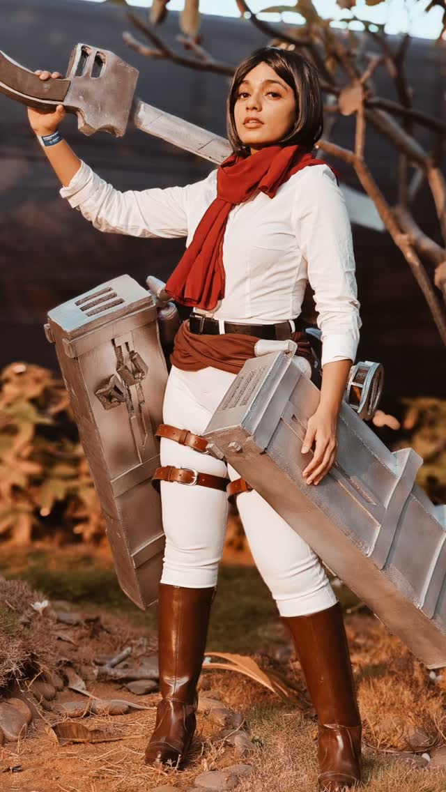 My first Mikasa Ackerman cosplay🤍 thanks to - 📷 - @ryuzaki_editz_ @soulreaver8 Picture edit - @rishi_dasari Location - @comicconindia