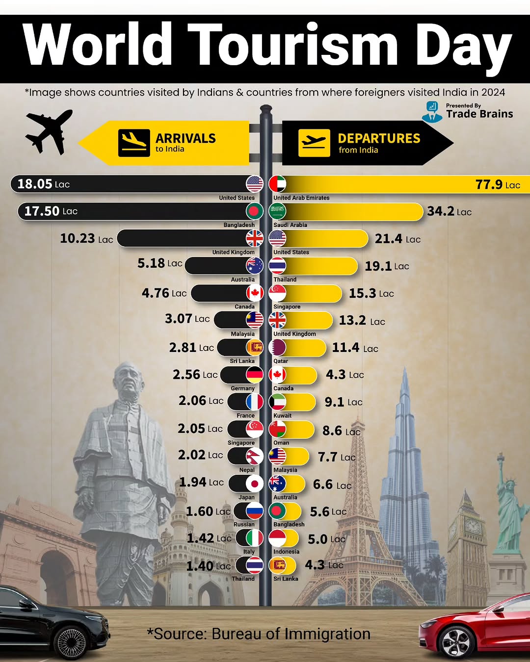 🌏 World Tourism Day 2025 ✈️ On this World Tourism Day, we explore the countries Indians visited and the nations from where foreigners visited India in 2024. Insights into global travel trends and tourism dynamics! ❓ Which destinations do you think topped the charts? 🗺️ Follow @trade.brains Follow @trade.brains #worldtourismday2025 #india #usa #uae #travelling #travel #foreigners #world #travelgram #instatravel #fyp #trending #departure #arrival