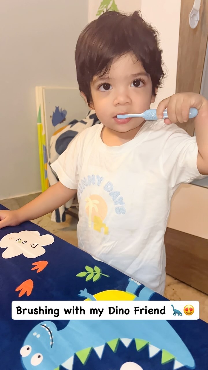 Brushing teeth with my dino buddy is so much fun! 🦷🪥😁 Bright smiles start early! ✨ Keep those tiny teeth shining with Chicco Toothbrush. Comment ‘link’ for shopping details! 🪥😊 [brushing , teeth , dino, buddy, fun, oral hygiene, routine, playful, toddler teeth , dental care, toddlers , baby teeth, tooth brushing, oral health]