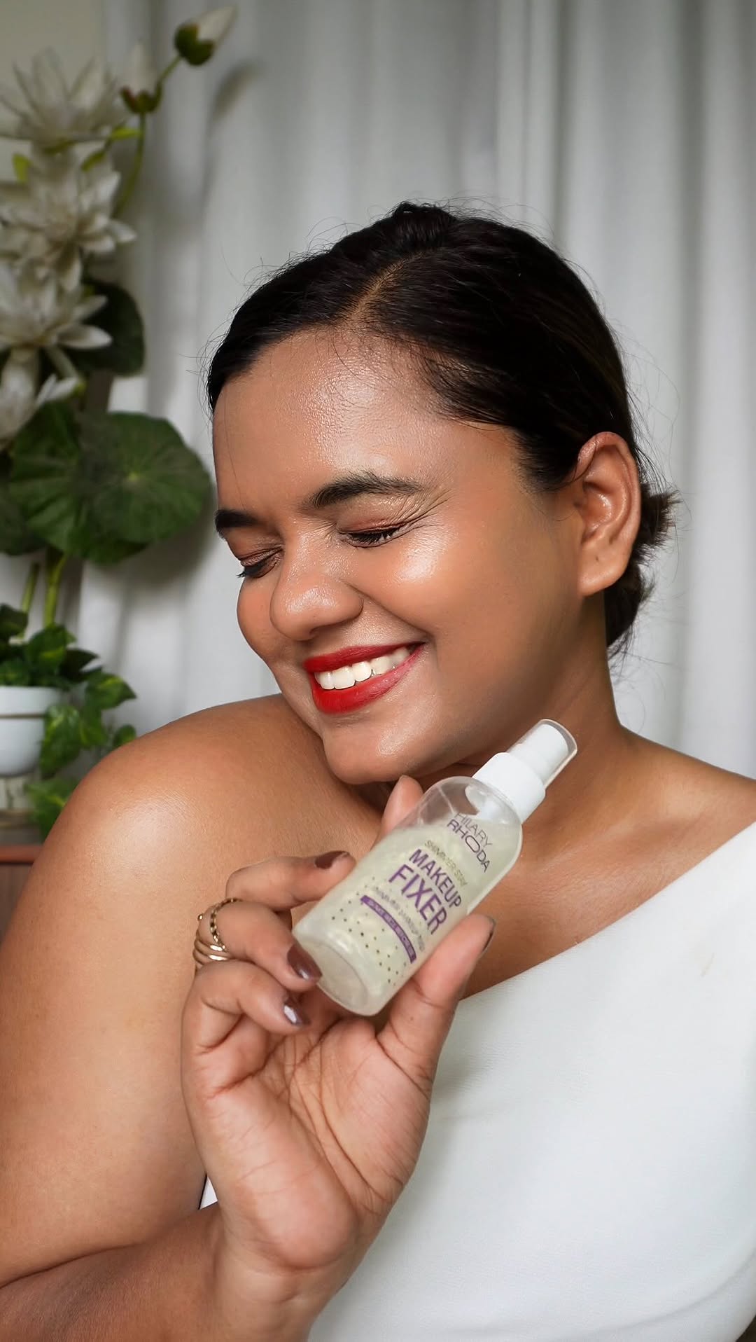 ✨Red carpet glow, minus the red carpet✨ Hilary Rhoda Shimmer Spray = instant radiance, dewy finish & that just-stepped-out-of-glam-van vibe 💫 One spritz and you’re glowing like the celeb you are! @hilaryrhodacosmetic #hilaryrhoda #hilaryrhidacosmetics #wherebeautybegin #ShimmerSpray #GlowLikeAStar #DewySkinGoals #CelebrityGlow #MakeupMustHave #GlowUpGameStrong