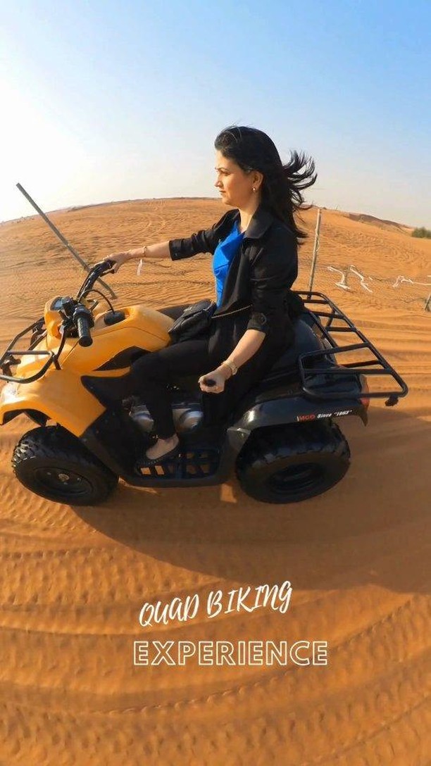 Do you know what to expect in a desert safari booking, when in Dubai? There are 4 main parts to the day, after you get picked up by the driver and taken into the desert area : 1. First stop is the Quad biking area - its a simple bike with 4 wheels and the break and accelerator - anyone can try it! And my favourite part :) 2. Next is the actual desert safari in the vehicle - quite a ride this can be! 3. After this they stop at a great sunset point in the middle of the desert for picture time. 4. Post sunset, you will be taken to the desert camp, seated at your table for an evening of performances(belly dancing, fire shows, etc) and dinner. You can also opt for a camel ride here or do some traditional shopping. PS : You can book regular or VIP...VIP serves everyting to your table. And then we head back! #dubai #dubaitourism #dubaidesert #dubaireels #desertsafari #quadbike #bellydancing #instareels #wanderlust #lovetotravel #travelreels #trip_it_over @insta360indiaofficial