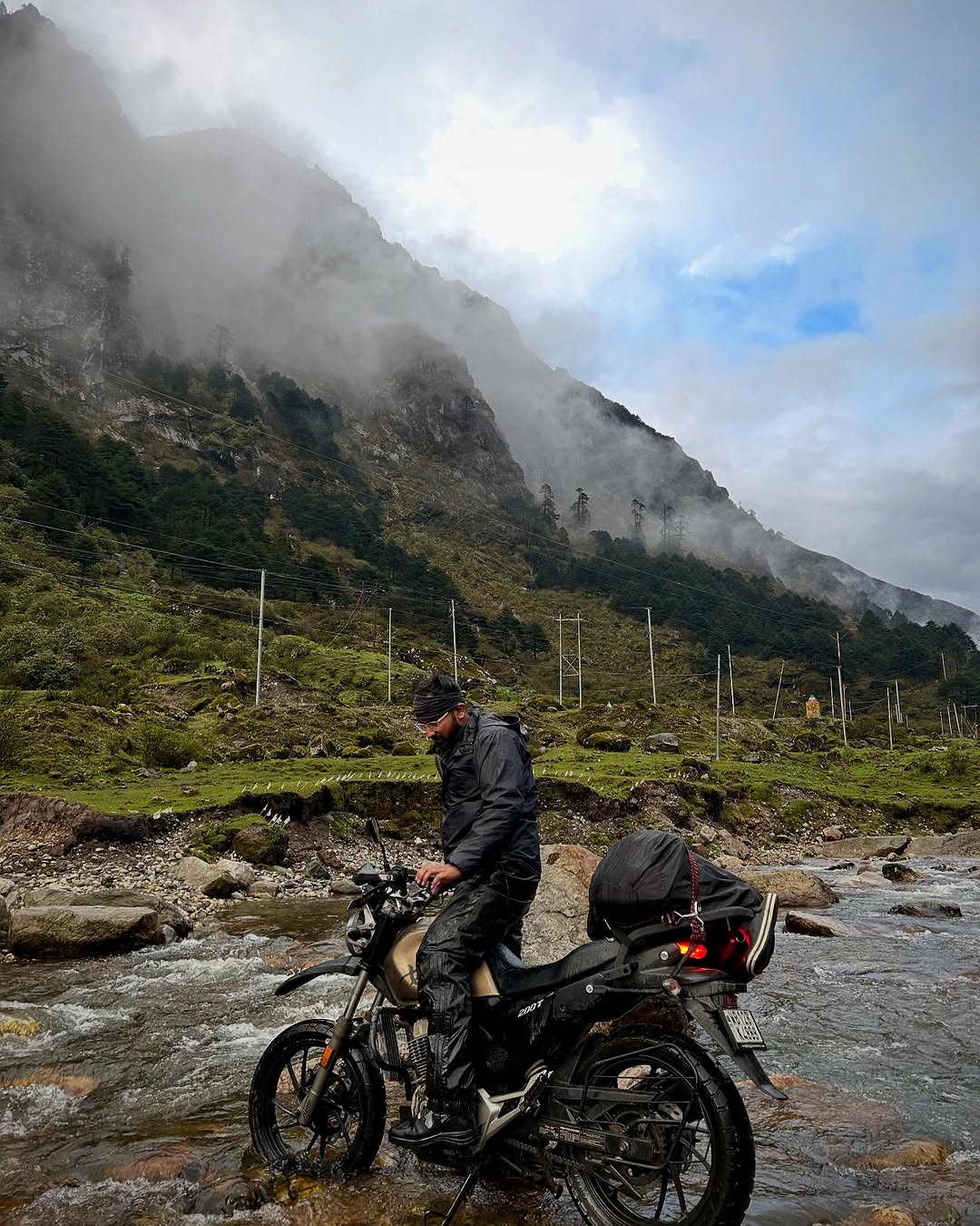 “The mountain called, the river dared — and I, the wanderer, answered with a throttle.” . . . . #safarkikahani #adventureawaits #livetoride #motovibes #cinematicvibes #wanderlustonwheels #twowheelsonelove #ridemoreworryless #travelwithme #offroadjourney #tawang #northeast #rainride #reeladventure #ridetoexplore