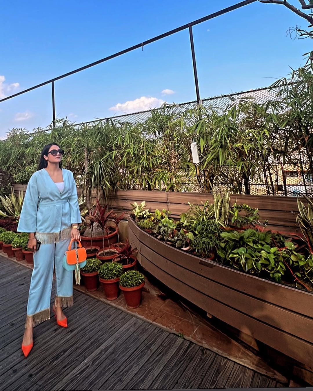 "Blazing blues meet neon dreams. 🌀🧡 #outfitgoals #explorepage