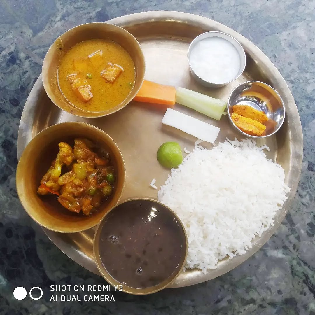 Tried this authentic nepali food during my nepal trip. In this plate: Mix veggies Paneer Gravy Curd Pickle Steamed rice Black Pulse Place: I don't remember 🤔 Taste: ⭐⭐⭐⭐ #nepalifoodie #nepalifood #nepalfoodblogger #nepalicuisine #spicedup #foodlover #foodporn #foodie #pizzagram #yummy #food #restaurant #indianfoodbloggers #instafoodie #hungergames #likeforlikes #alwayshungry #foodbloggers #lucknowblogger #bloggermail #kanpurbloggers
