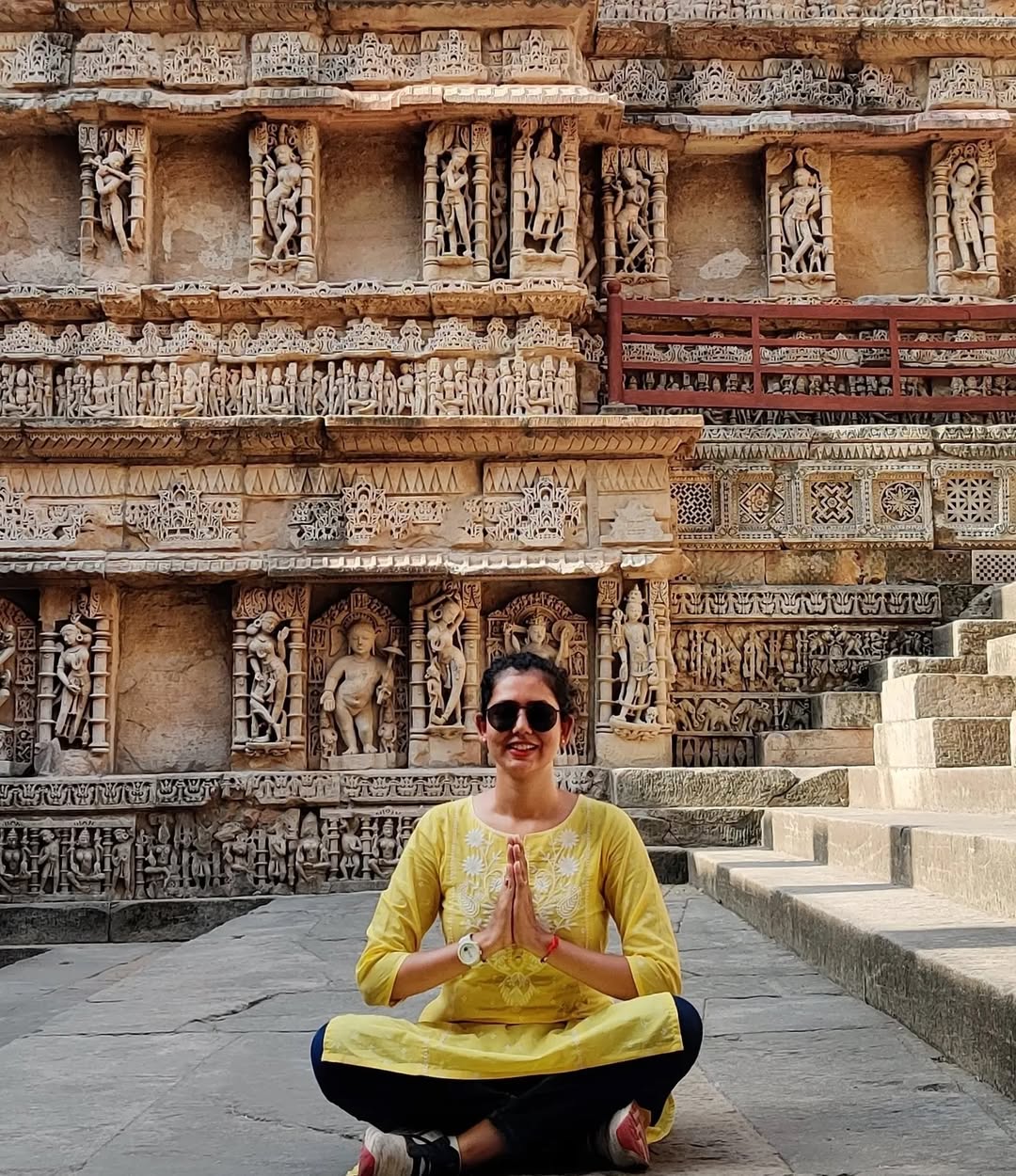Namaste from Rani ki Vav, Paatan! Beautiful stepwell that is featured on 100rupee currency note of India. . . . . . . . . . . . . . #ranikivav #patan #stepwell #gujarat #gujarattourism #gujarattour #gujaratdiaries #ranikivavpatan #indiangirltravels #ancientindia #indianarchitecture #indiantraveller #indiantravelblogger #stepwellsofindia #Indianfemaletravellers #templesofindia #indianplaces #ethnicdress #ancientindianhistory #medievaltimes #indianvibes #travelindiagram #travelindiadiaries #mytravelgrams #gujarattrip