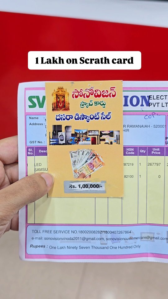 ✨️Win upto 1 Lakh on Scratch card✨️ . Place - Sonovision Location 📍- Available in all AP & TS branches . ➡️Win upto 1 Lakh on Scratch card ✨️15% cashback ➡️Offers on bank cards ✨️No interest on Finance on some products . Sonovision, electronics, tv, fridge Refrigerator, ac, washing machine . #sonovisiondasarasale #vijayawadacity #vijayawadablogger #vijayawadabloggers