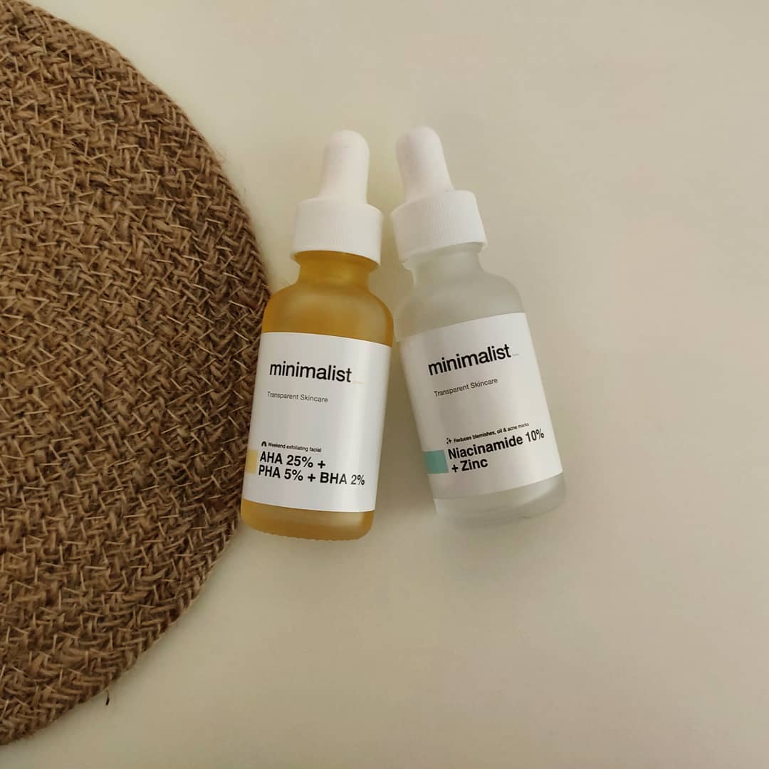 Hey everyone! It's been 4 months I'm using these two products from @beminimalist__ Niacinamide + zinc serum and AHA + PHA + BHA facial peel So I wanted to share my thoughts about these two. 𝐍𝐢𝐚𝐜𝐢𝐧𝐚𝐦𝐢𝐝𝐞 𝐒𝐞𝐫𝐮𝐦 𝟑𝟎𝐦𝐥 ₹𝟓𝟗𝟗 • It is a water based serum so you won't feel sticky or shiny skin. • It is very light to the skin and absorbs quickly. • It actually does what it claims, it has reduced my enlarged pores, acne spots and controlled oil production. • It also helps to repair skin barrier and makes your skin healthy, if you have redness or inflammatory skin. How I use it: After face wash I take 3 drops of the serum and apply all over my face then apply moisturizer and (sunscreen at AM) 𝐀𝐇𝐀 𝐏𝐇𝐀 𝐁𝐇𝐀 𝐟𝐚𝐜𝐢𝐚𝐥 𝐩𝐞𝐞𝐥 𝟑𝟎𝐦𝐥 ₹𝟔𝟗𝟗 It is not necessary to use this product because this is a strong exfoliator that you really need to use carefully, I use it because my skin can handle it, and I get hormonal acne and whiteheads that's why I use it. • You must patch test first before using it. • Don't use it on broken skin (if you have fresh razor cut or popped pimple). • I feel little tingling sensation which is normal but if you can't handle the tingling don't use it. • It helps to dry out the pimples, whiteheads, blackheads and textured skin. • It helps in fading acne scars, hyperpigmentation and acne spots. • Use once a week for only 10 mins after face wash then apply hyaluronic serum and moisturizer. Both the products are good just know what your skin needs and how it will react. #congestedskin #acnespot #pimplespot #acne #hyperpigmentation #beminimalist #minimalist #skincare #skincareproducts #skincareroutine #pimple #openpores #enlargedpores #skinbarrier #sebum #oilcleansing #oilproduction