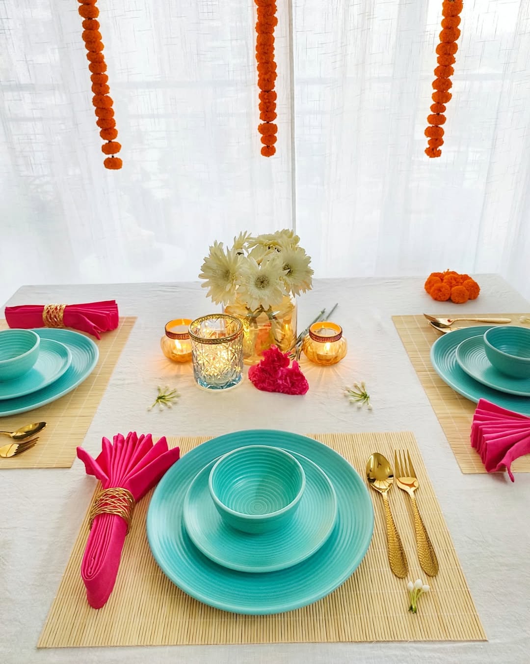 𝗛𝗮𝗽𝗽𝘆 𝗩𝗶𝗷𝗮𝘆𝗮𝗱𝗮𝘀𝗵𝗮𝗺𝗶 💖✨Created this festive table set up using beautiful dinnerware from @studioseedhome for the celebration of this auspicious occasion. ▶️𝗦𝘄𝗶𝗽𝗲 𝗧𝗼 𝗦𝗲𝗲 𝗔𝗹𝗹 𝗣𝗶𝗰𝘁𝘂𝗿𝗲𝘀... Love the Aqua Blue colour and classic matte finish of this dinner ware perfect to add that festive bling into home✨💖 Visit @studioseedhome for such beautiful hand crafted ceramic crockery ware, planters and many more made by local artisans. . . . . . . . . . . . . . . . . . #dussehra2021 #festivaldecor #festivevibes #tablescapes #tablesetup #diningroomdecor #diningtabledecor #dinnerset #diwalidecor #diwalidecorations #floraldecor #diwali2021 #diwalivibes #indianfestivals #homedecorinspo #homedecorideas #indiandecor #whiteinterior #diydecoration #delhigram #ig_mumbai #indiandecor #diyhomedecor #beautifulhomesindia #indianhome #indiandecorideas #desidecor #indiandecorblogger #mydesiswag #indiandecorblogger