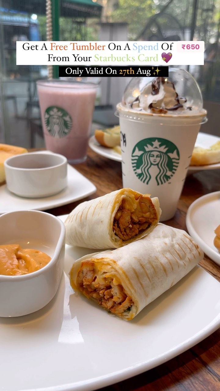 #offeralert • @starbucksindia The offer is about; every customer will recieve a free tumbler on a spend of ₹650 from their starbucks card😍 I recently visited @starbucks_kolkata and it was an absolute delight for my coffee-loving soul. The ambiance was cozy and inviting, making it the perfect spot to unwind or get some work done. The staff was friendly and efficient, ensuring that my order was prepared just the way I like it💖 The variety on their menu is impressive, catering to both coffee connoisseurs and those who prefer a refreshing tea or a delectable pastry 😋 While Starbucks is known for its coffee, their food offerings deserve praise too. The chicken tikka sandwich & murgh kathi wrap I had was fresh and flavorful, a perfect accompaniment to my coffee choice🥰 Whether you’re looking for a quick caffeine fix or a place to savor your favorite brew, this is the place to be. I’m already looking forward to my next visit!! P Starbucks, Forum Mall, Elgin, Kolkata 600 for two approx💝 Don’t follow @_bonglicious_ for more mouthwatering updates #reelsinstagram #trendingreels #viralvideos #trendingsongs #caffeine #coffee #coffeelovers #snacks #starbucks #exploremore #explore #explorepage #explorereels #fyp #kolkata #kolkatablogger