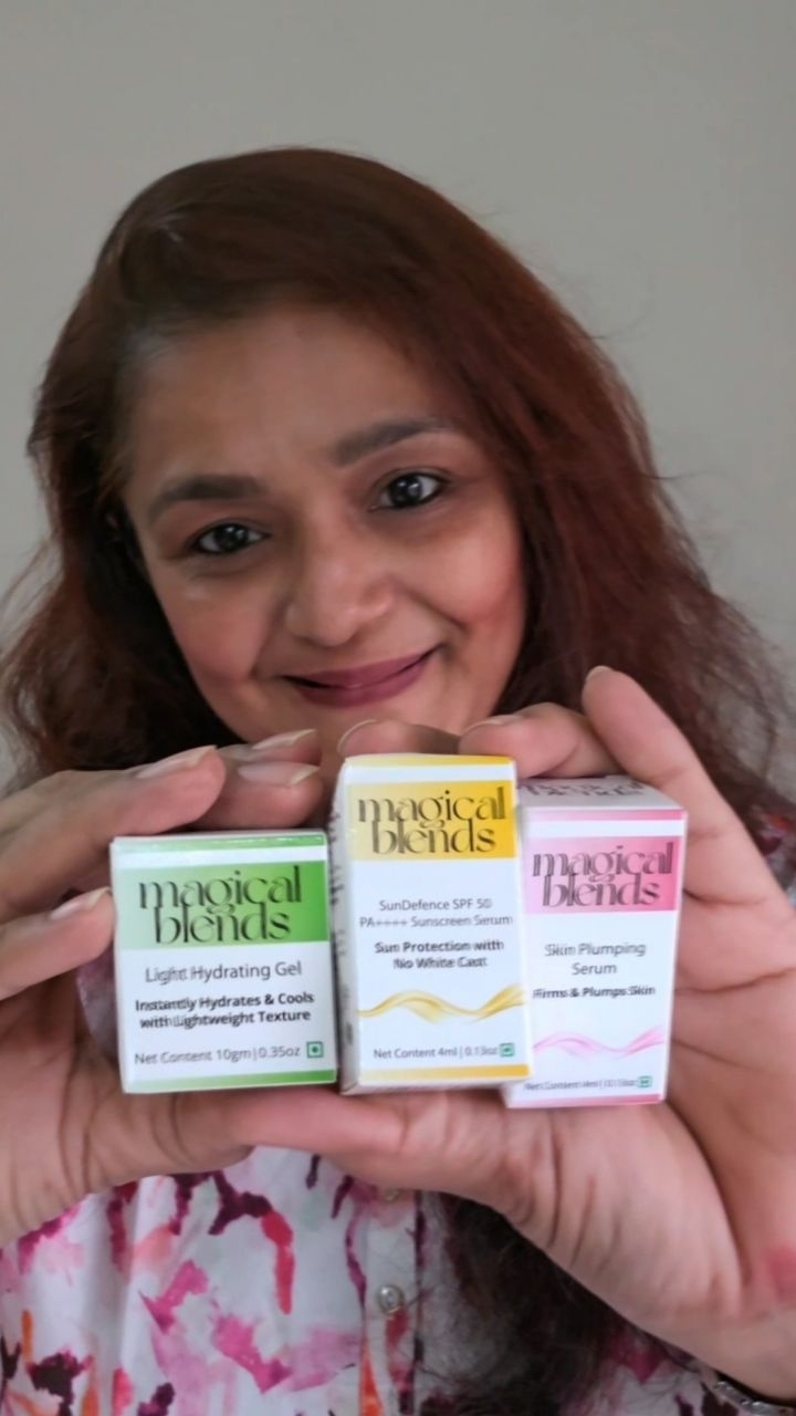 💫✨️Discover the magic of personalised skincare with Magical Blends, designed to address all your skin concerns. From ageing signs and wrinkles to acne and pigmentation, our dermatologically tested products are safe for every skin type and gender. Today, I'm using the Light Hydrating Gel combined with our SunDefence Sunscreen Serum and Skin Plumping Serum to ensure all-day protection, hydration, and a youthful plump.✨️💫 Customize your skincare regime with Magical Blends and enjoy a special 12% discount using code REF12 at checkout. Visit www.magicalblends.in to start your skin transformation journey! #PersonalizedSkincare #MagicalBlends #SkincareRoutine #AntiAging #WrinkleFree #HydratingGel #SunDefence #SkinPlumping #GlowingSkin #HealthySkin #SunscreenSerum #SkinCareProducts #SkincareJourney Personalized skincare, Anti-aging skincare Hydrating gel, Sun protection, Acne care Skin pigmentation, Wrinkle reduction Skin plumping, All-skin-types Dermatologically tested Skincare discount Skin hydration