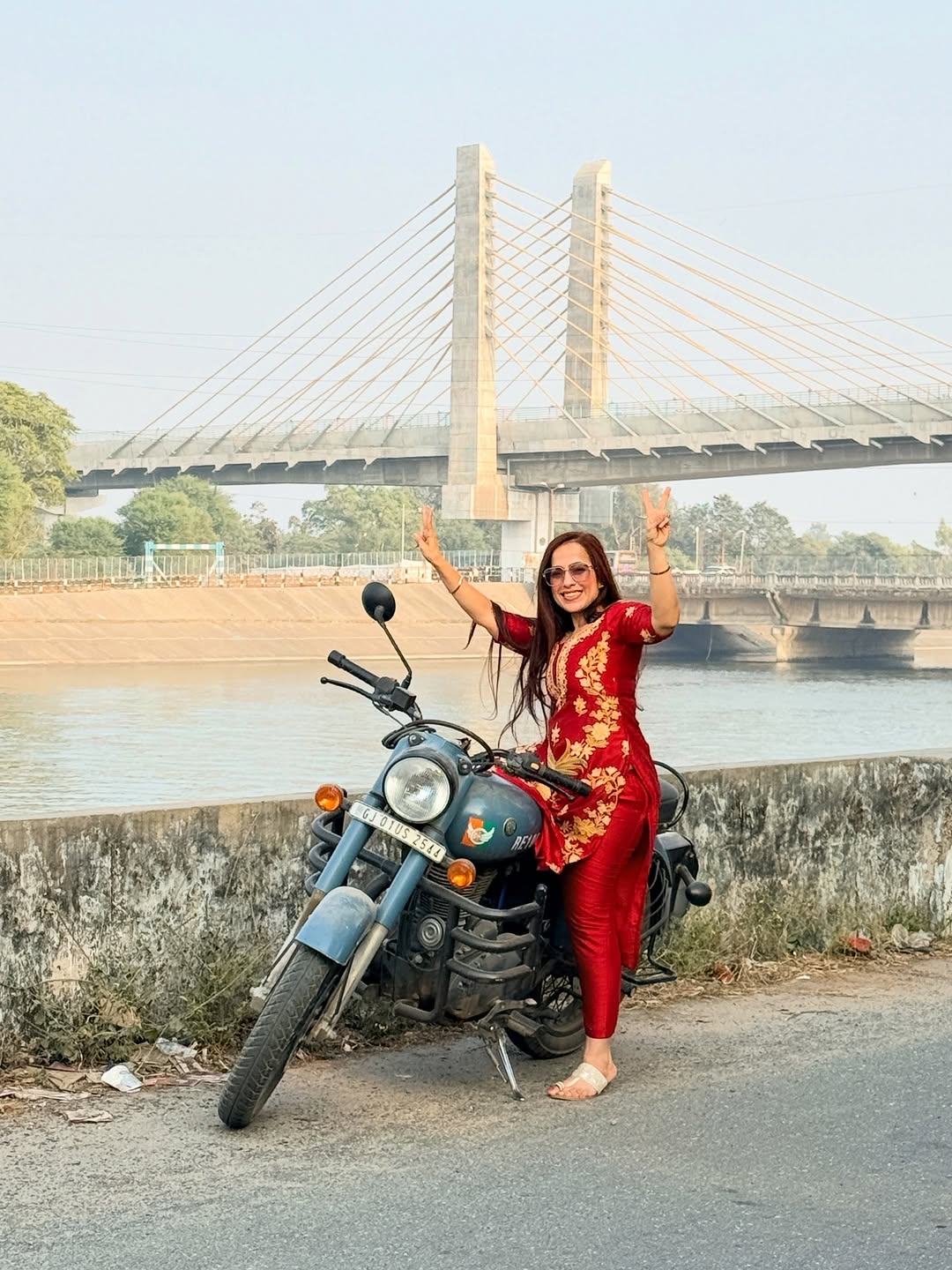 Suit mein bhi swag, bike pe bhi fire 🔥 Desi ride, desi pride 🏍️❤️ #DesiGirl #RoyalEnfield #BulletLove #WomenWhoRide #GirlOnBiKe