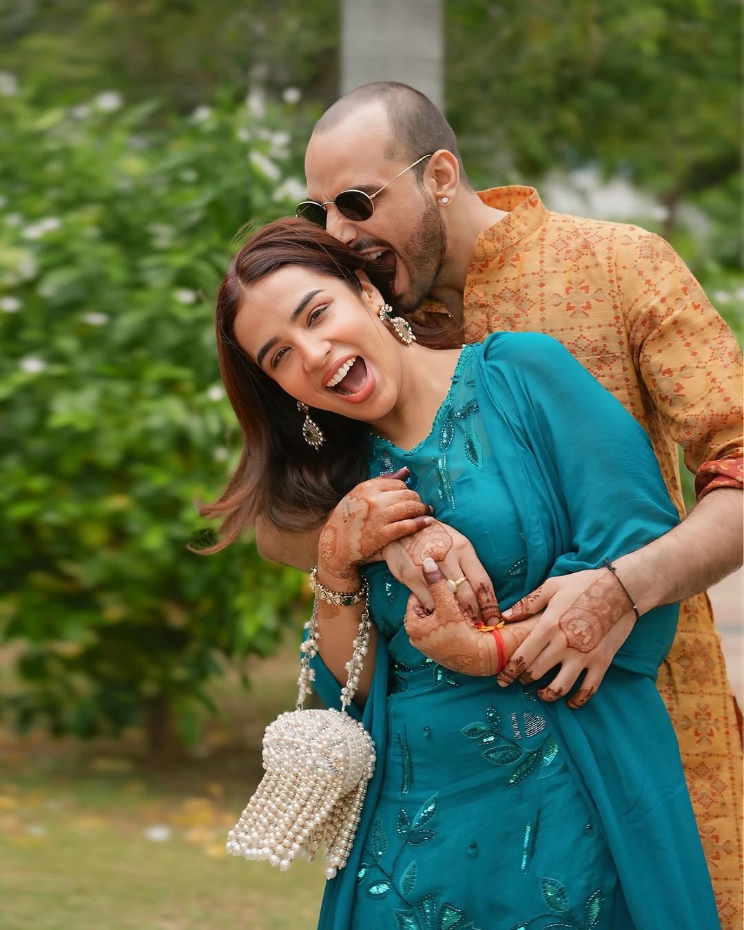 // Comment your favourite picture 😍Wedding bells 🔔 . . Wearing : @officialbaanikhurana Bag: @houseofkosha.in