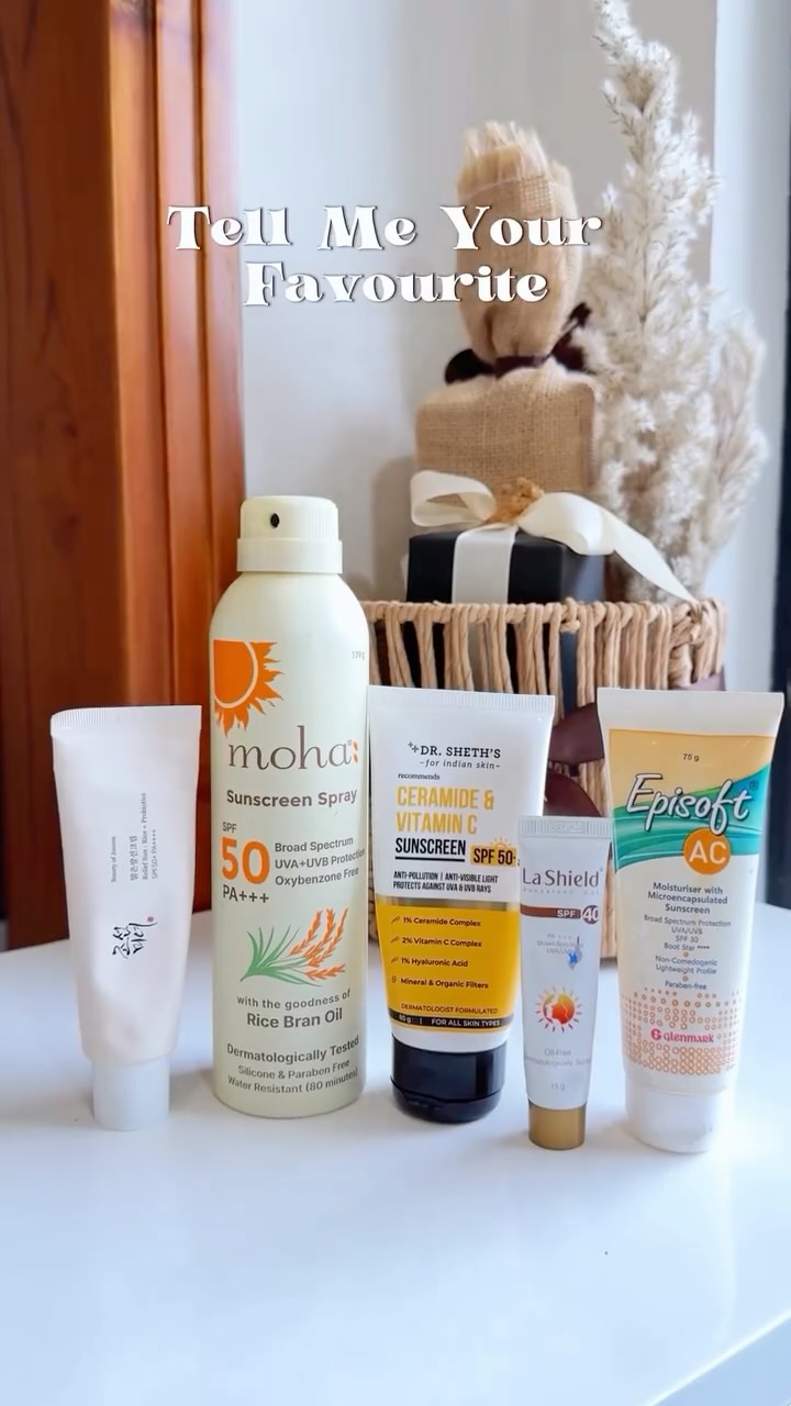 Honest Review🤗🤍 Acha suno… if you still think sunscreen is just for Goa trips, I’m judging you (nicely 👀). UV rays don’t care if you’re at the beach or at your balcony—they’re ageing you daily. So here’s my top 5 sunscreens that actually deliver: 1. Episoft AC – Creamy, doubles as moisturizer, perfect for dry skin. @episoft_glenmark 2. Dr. Sheth’s Ceramide & Vitamin C – Brightens, barrier-boosting, no white cast. @drsheths 3. La Shield Gel SPF 40 – Matte finish, oil-free, acne-safe. @lashieldofficial 4. Beauty of Joseon – Luxe, sweatproof, blends like skincare. @beautyofjoseon_official 5. Moha Sunscreen Spray – Body care made lazy-girl friendly. @themohalife No more excuses now. Try one, wear it daily, and thank me when you’re 40 and still getting carded at the bar 💅 Which one should I swatch next? . . Available on @mynykaa @nykaacosmetics . Edited by @rohanjain003 . #BeachEssentials #BodySunscreen #DailySunscreen #DermApproved #FaceSunscreen #skincare #spf #Sunblock #SunProtection #sunprotection☀️ #SunSafe #SunscreenForAcne #SunscreenForSensitiveSkin #SunscreenLove #sunscreenrecommendation #sunscreenspray #WaterResistant #honestreview #review