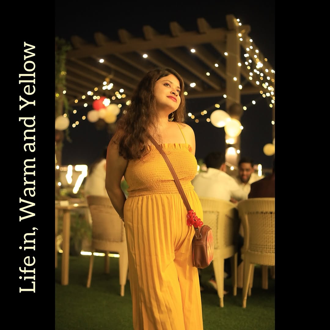 Life in, Warm and Yellow . . 🫶 @delusional_aru_ Count down began, with a grand cocktail night @theirishbrewery_kolkata . . @gorgeous_junk_55 had a great time with you 🫶 . . #ootd My only favourite Yellow Jumpsuit, a gift from Maa, during Puja 2022, with chudiyaas from local Market and my basic pair of comfort from @bata.india #cocktailnight🍸 #engagement #bridesmaid #friendstime #timewithfriends