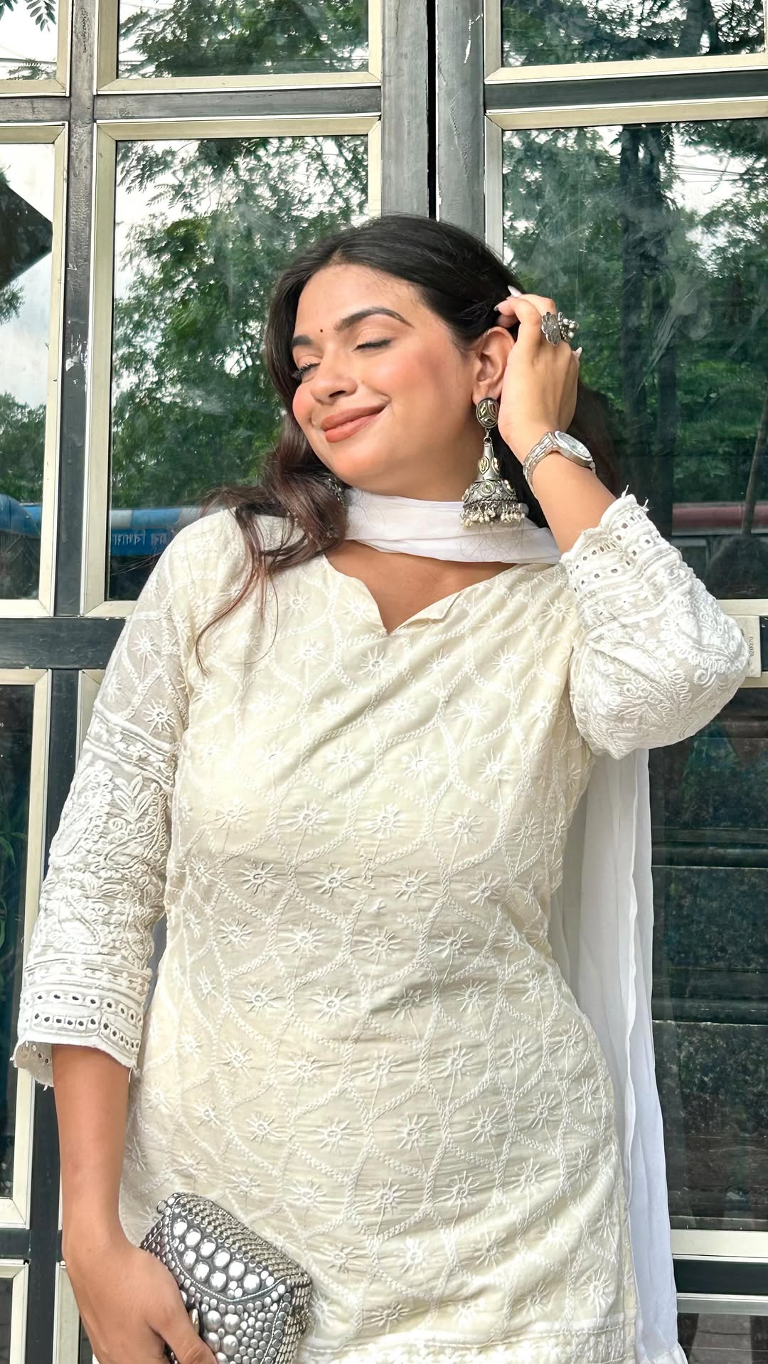 “Desi Dayout” Comment “link” A chikankari kurti is never just a kurti its grace stitched into cotton. Light enough for the sun, elegant enough for any scene. Brunch, bazaar, or blessings she fits in everywhere. Wearing @houseofjamoti