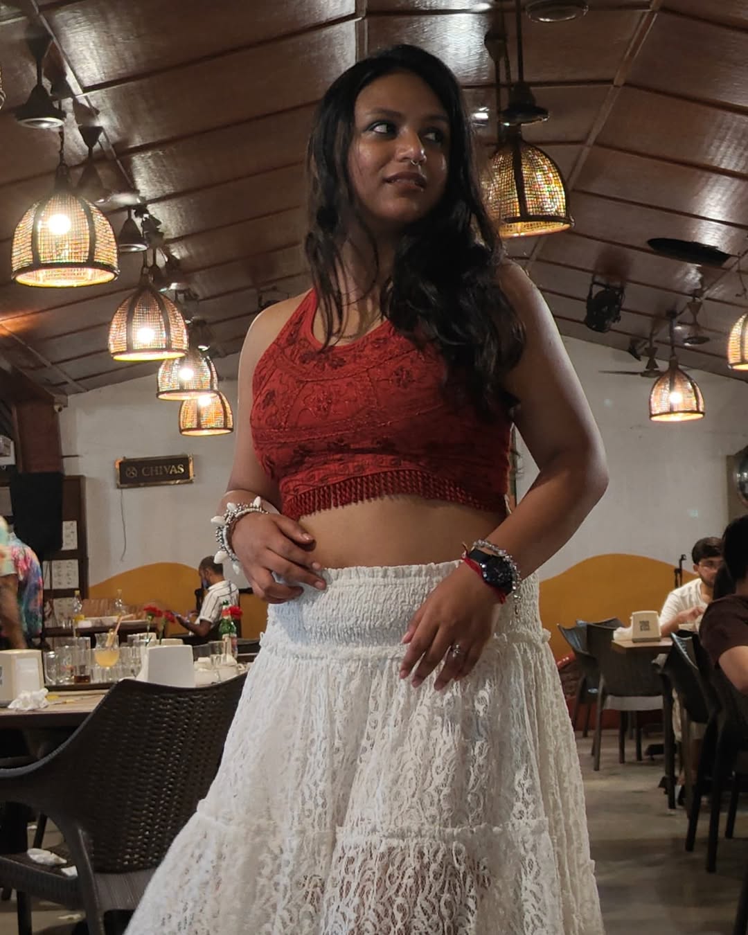 Cause every corner was pretty at @martinscornergoa ❤️✨ 📸 @shibazeegrrr . . . . . . . [ goa trip, Goa eateries, travel story, Martin's Corner, Goa Restaurant, Beach fashion, Tropical fashion, dinner look ]