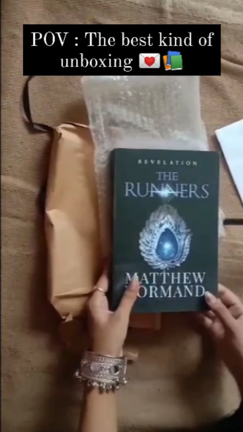 Let's raise a toast to authors that send their creations on world tours🌍🙌. @raw_fiction_pub Thank you for going the extra mile (literally)🤭. So, picture this : I am casually on my way home contemplating whether I should have tea or coffee (classic dilemma, right?) Then there's this book mail at home. I kid you not it looked like it came from Hogwarts. At this point I was already intrigued. Further, there is a handwritten note. Like legit, ink on paper, real-deal note. Then I open the box and it was this book 'The Runners' Revelation signed copy by Matthew Normand. It's from the author himself and it came all the way from the land of uncle Sam. So here I am, book in one hand, note in the other thinking "This is some next level bookish love". Anyway I am about to dive headfirst into this one. But first I had to share this Epic unboxing journey with you all examining whether my unboxing skills match my reading skills (PS - they don't). #unboxing #bookmail #bookunboxing #bibliophile #fantasy #bookworm #trending #trendingreel #booktok #bookstagram #bookgift #fiction #novel #reelsdaily #withyou #booklover #authorcopy #signedcopy #bookish