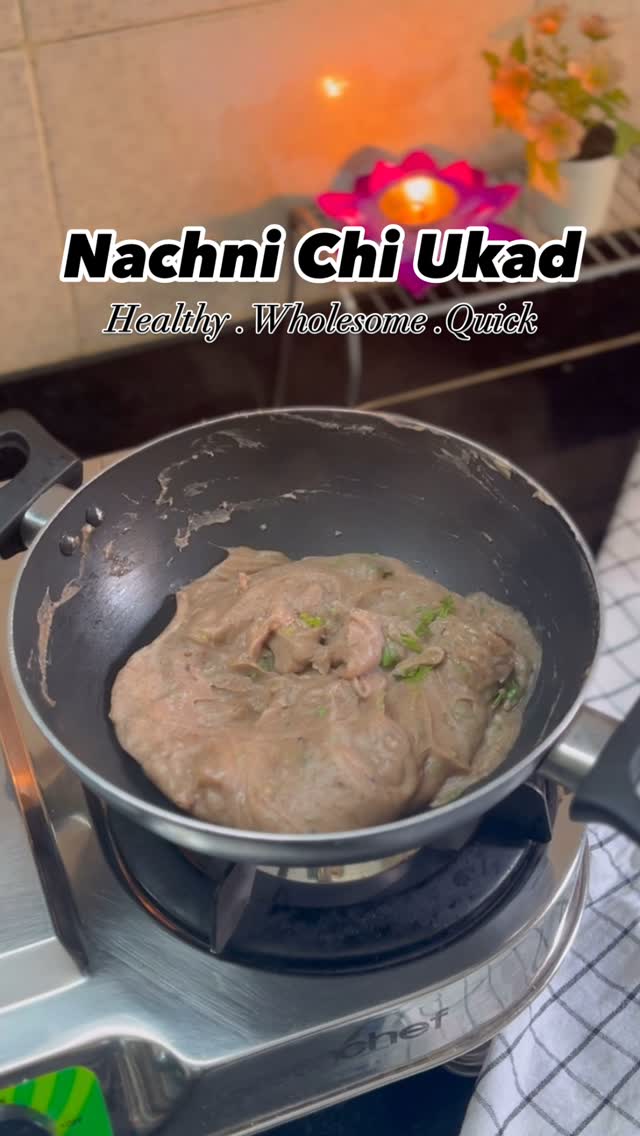 Nachni (Ragi) Chi Ukad Recipe ✅ Ragi Breakfast Recipe 👇🏻 . . Ragi Ukad Recipe - ✅Take 1/3 cup Ragi/finger millet/nachni flour add 2-3 tbsp rice flour and 1/4 cup yogurt/dhai mix this all very well with 1 cup water to it. Make sure to make a runny batter. ✅Prepare a tadka with ghee - jeera - mustard seeds - curry leaves - green chillies and then add the ragi batter made ✅Make sure to continuously keep stirring the mixture as it will thicken up very fast. ✅Add some coriander over it and just let it cook on steam for some time ✅Once its cooked its ready to be served with some ghee . . This Nachni chi ukad taste really good and a very good replacement for upma also. This breakfast recipe is super healthy and wholesome . . [Ragi, ukad, upma, Ragi recipes, Healthy breakfast idea, Ragi Ukad, nachni, finger millet recipe, millets recipe, superfood, easy recipe]