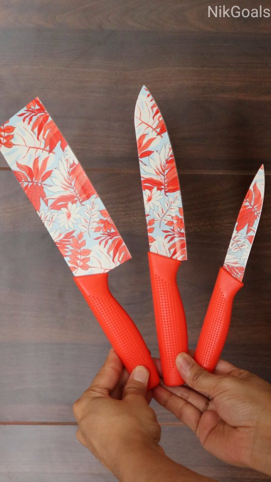 Upgrade your kitchen with this 3pcs red printed stainless steel knife set – sharp, stylish & built for everyday indian cooking! 🥒🍅🥭🍗 Comment "link" to get product link in your inbox automatically.(Followers Only) ✔️ chef knife | utility knife | paring knife ✔️ super sharp & durable stainless steel ✔️ non-slip handles for perfect grip ✔️ blade covers for safety & hygiene from chopping veggies 🥦 to slicing fruits 🍉 & prepping meat 🍖 – this set has you covered like a pro chef! 👨🍳 🔥 add style + precision to your kitchen today! #knifeset #chefknives #indiancooking #kitchenessentials #cookingmadeeasy #sharpandstylish #stainlesssteelknives #homecooking #professionalchef #printedknifeset #kitchentools #redknifeset #knife #knives #knivesset #viralreel #viralreels #pune #maharashtra #india #bharat #nikgoals [ kitchen knife set, 3pcs red printed knife, stainless steel knives, chef knife set, professional kitchen knives, printed knife set, chakkuu, chappu, indian kitchen tools, sharp knives, durable knife set, cooking knives, vegetable cutting knife, fruit knife, meat cutting knife, stylish knife set ]