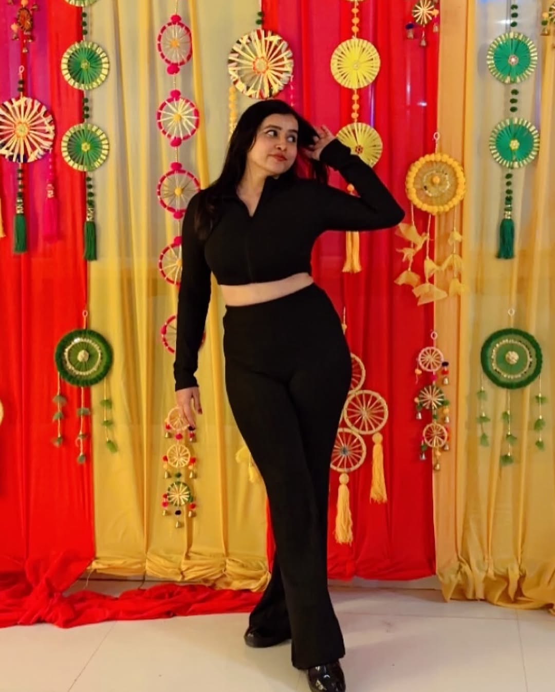“Standing in a sea of vibrant shades, black becomes my signature.” Wearing co-ord set from @newme.asia @newmeogs . . #patakhapoo #newmeasia #newmeogs #newmeasiasquad #coordset #wintercoord #winters #winterfashion #h#lohri #lohricelebration #lohrifestival #blacklove #blacklover