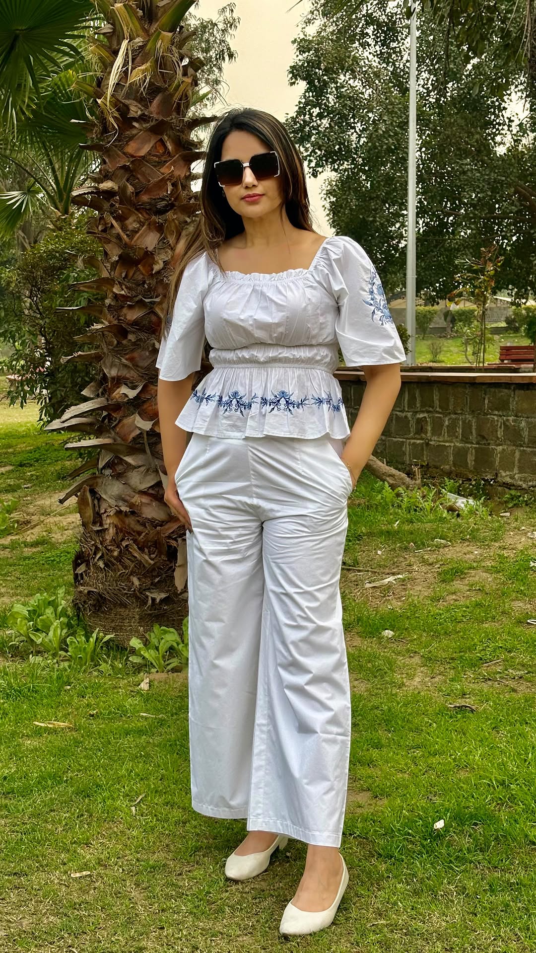 Styling my new white and blue co-ord set! By @madamefashions 🕊️ 💙👗 Available at @amazonfashionin @amazondotin Comment for link 🔗 . . . #ootd #FashionInspo #GRWM #SummerVibes #coordset #madamefashion #amazondotin #komalnirula_official