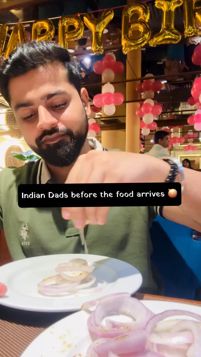 Kya starters? Kya main course? Nobody…bothers about it😌 #greenchutney #onionrings #starters #maincourse #chickentikka #northindianfood #indiandad #desidad Keyword: Indian dad, dine in, main course, chutney, onion rings, pyaz, chutney, starters, chicken, dal makhni, paneer tikka, yummy, funny dads, meme