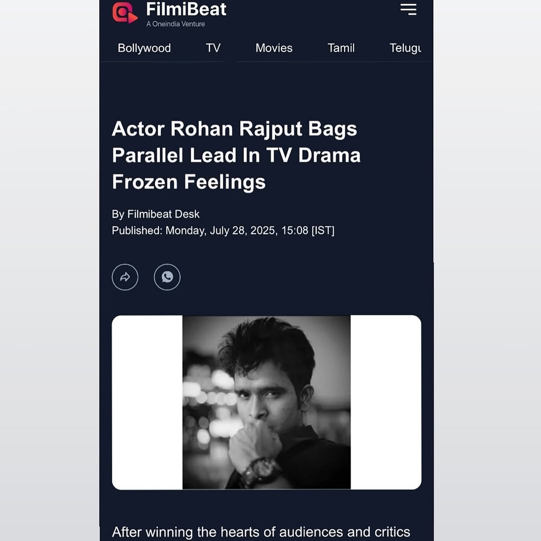 Featured on prestigious Filmi Beat 🎬 for Frozen Feelings streaming on @waves_ott as my parallel Lead Character Dr Rishabh (aka me ) continues to be loved ❤️by the audience !!!🥹 Thank you for 🙏 appreciating my work in this webseries Iam happy u all are loving it and big thanks to @yourparvezzakramkhan sir for giving me character of Dr Rishabh which is very close to my real personality -Charmimg ,confident ,handsome and helpful 😜 Also talked to Filmi Beat about my journey from a middle class MBBS boy to becoming a full time actor 🎬 influencer ⭐️and Enterprenuer [actor ,actorslife ,News ,Rohan Rajput , Dr Rohan Rajput ,media news] . #filmibeat #news #featured #webseries #actor #actorslife🎬 #rohanrajput #drrohan #headline