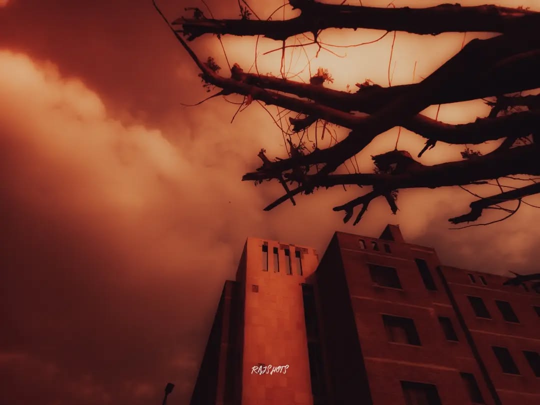 Scarlet skies over academia 📛 #rajshots⚡ - 🚩JAI SIYA RAM 🚩 📸shot on GALAXY A12 📍JAIPUR , RAJASTHAN ✅save & share this post 🎞️Follow @rajsh0ts for more #photography #strangerthings #redsky #scarlet #college #university #academia #scary #art