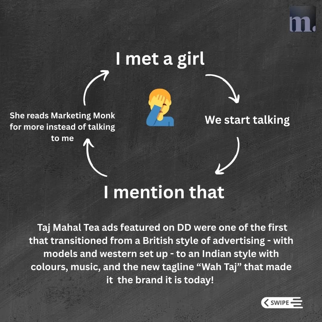 Marketing that made history 🤩 Swipe to discover the story behind the iconic "Wah Taj!" tagline ⏩ [marketing, zakir hussain, taj, chai, iconic ad, nostalgic ad, memories] #marketingmonk #digiphin #zakirhussain #wahtaj #nostalgicad #marketing #iconicad #brandstrategy #brandbuilding #nostalgia