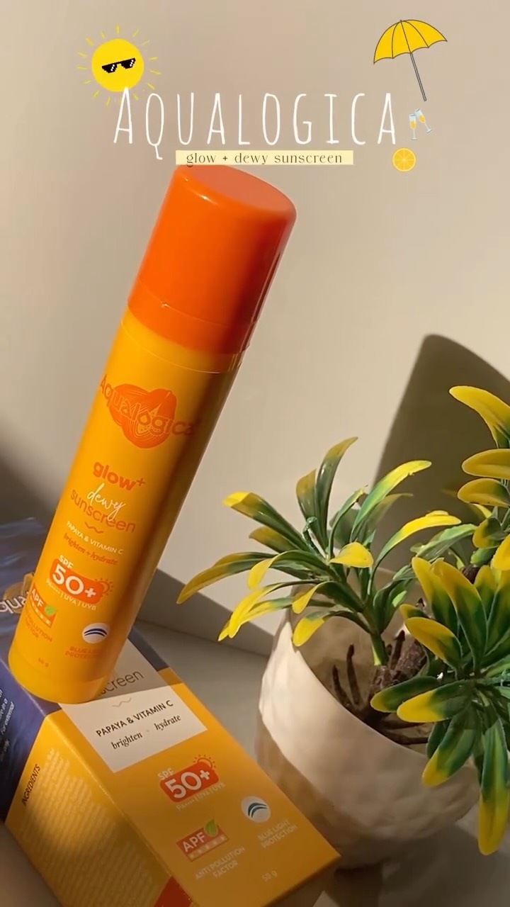 Your daily dose of glow + SPF magic☀️!! because sunscreen should shine as bright as you do!✨🛒 . . . . . . . . . . . [ glow, dewy finish, sun protection, SPF, hydration, radiant skin,skincare,sunprotection, spf 50++ ] #AqualogicaGlow #DewySunscreen #GlowWithAqualogica #HydrationMeetsProtection #SPFLove #SkincareThatGlows