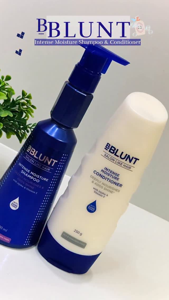 Dry hair days? Not anymore! This BBlunt Intense Moisture duo brings my strands back to life 💙🤍 . . . . . . . . . [BBlunt Intense Moisture,BBlunt India,Moisturizing shampoo,Hydrating conditioner,Frizz-free hair,Soft and smooth hair,Deep nourishment,Dry hair care,Hair hydration duo,Salon-like finissh,Healthy hair routine] #BBluntIndia #IntenseMoistureRange #IntenseMoistureShampoo #IntenseMoistureConditioner #HydrationDuo #MoistureLock #FrizzFreeHair #SoftSmoothHair