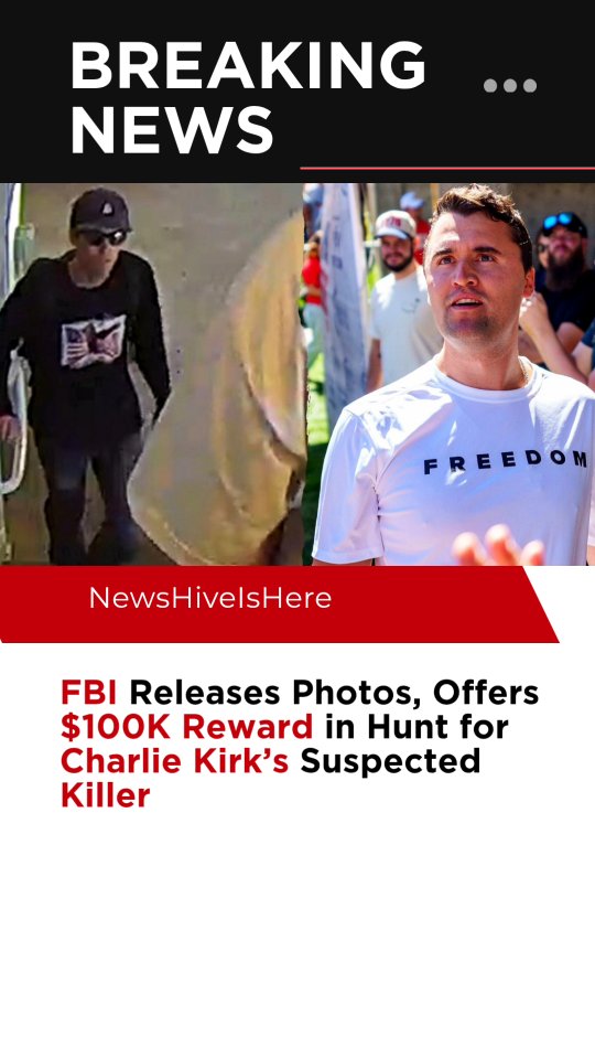 The FBI has released surveillance images of a person of interest in the fatal shooting of Charlie Kirk at Utah Valley University, offering a $100,000 reward for information leading to the suspect’s arrest. Authorities also recovered a high-powered bolt-action rifle believed to be used in the attack. The suspect, described as college-aged and wearing a baseball cap and sunglasses, was seen near the scene shortly before the shooting. The manhunt continues nationwide. (Source: ABC News, Reuters, AP) . . #CharlieKirk #FBI #BreakingNews #USPolitics #Manhunt #Reward #ABCNews #Reuters #AP