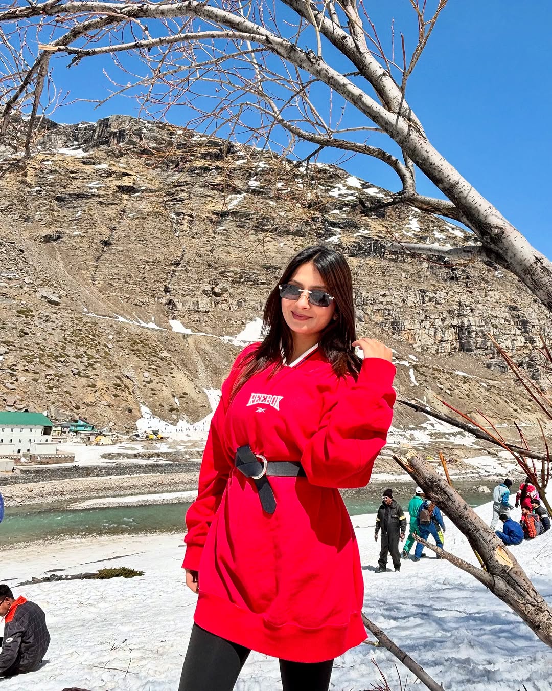 When the world gets too loud, I go where only the wind knows my name✨❤️🤌🏻🏔️ . . Fit check:- Oversized hoodie:- @reebok @reebokindia Belt:- @mango Sunglasses:- @cartier #manali #ataltunnel #mountains #love #peace #himachal #vacationmode #rohtang