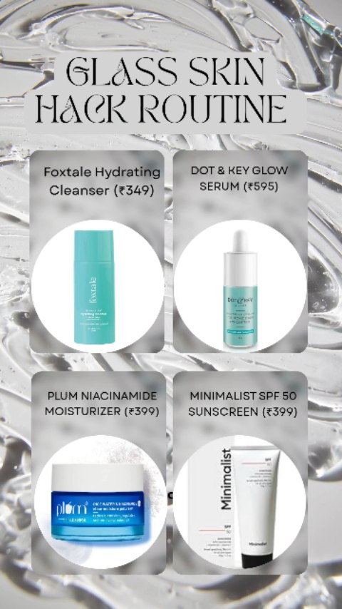 Budget-friendly Glass Skin Routine Comment for Links #ugc #ugccreator #skincare #contentcreator #glowup #content #ugccontent #skincaregoals #sunscreen #lipstick #moisturizer #cleanser #facewashroutine #facecare #serum #dotandkeyskincare #plum #minimalist #foxtale