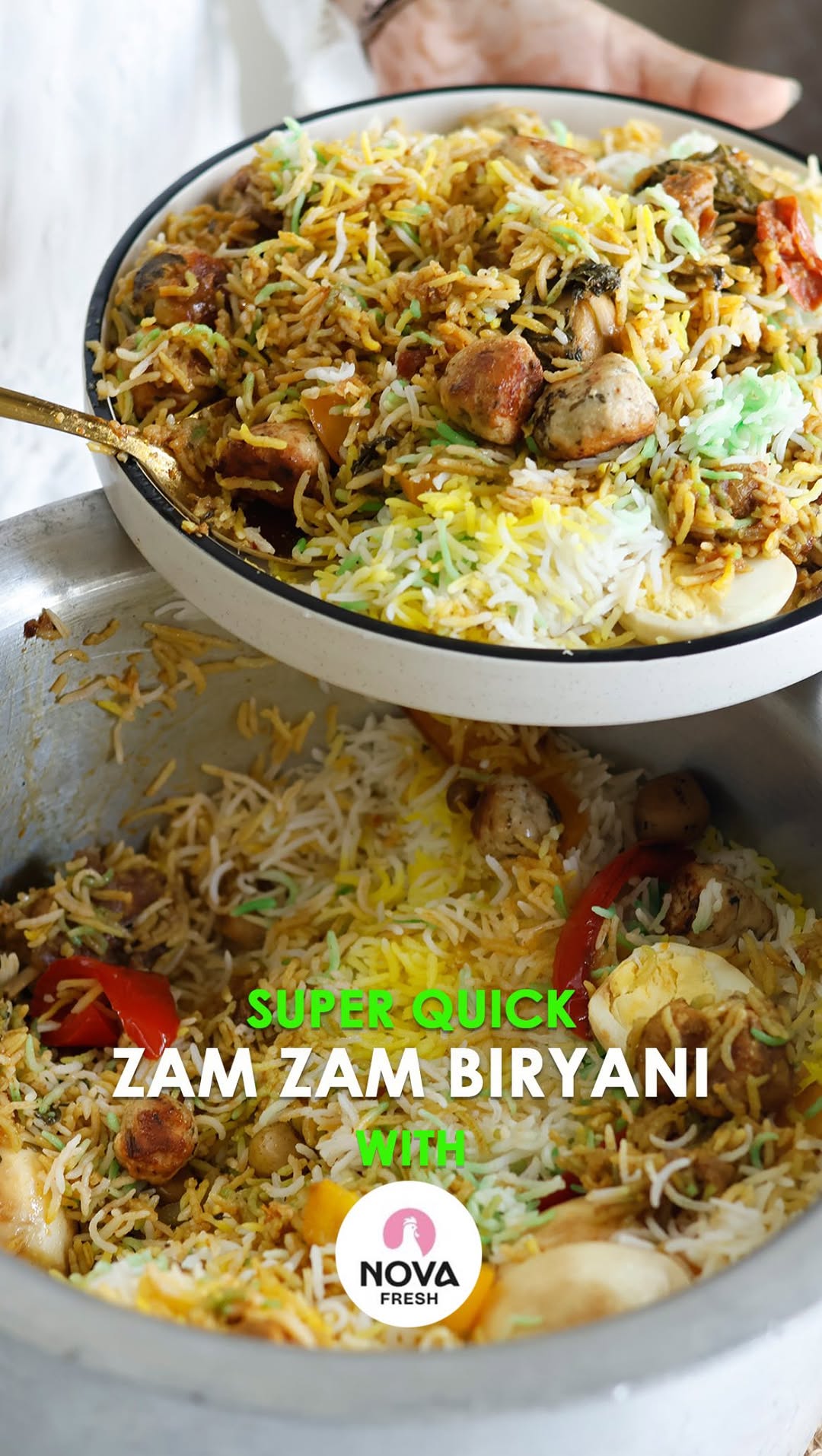 Super Quick Zam Zam Biryani at Home – Authentic Mumbai-Style Recipe using Nova Fresh Chicken 🍚🔥 Craving that iconic Mumbai-style Zam Zam Biryani? Now you can recreate it at home with this flavor-packed, spicy, and perfectly layered recipe — made even easier with Nova Fresh Chicken, cleaned and ready to cook! 🛒 Order Now: Fresh, halal chicken delivered to your doorstep by Nova Fresh! 📞 Call: +91 9004 2323 44 / +91 9004 3232 44 💬 DM: @novafreshchicken for more info ✨ Save & Share this post to try later! 👨🍳 Full recipe below 👇 Masala Ingredients: 4 medium onions (golden fried – barista style) 2 Tbsp ginger-garlic-green chilli paste 300g mutton shoulder 500g Nova chicken 4–5 chopped tomatoes 1 chicken bouillon cube 1½ tsp coriander powder 1½ tsp Kashmiri chilli powder 1 tsp garam masala ¼ tsp cardamom powder 1½ tsp meat masala 1 tsp cumin powder ½ tsp turmeric ¼ tsp nutmeg Salt to taste Potatoes (as desired) ½ cup fried onions (for layering) ½ cup sour curd (whisked) Fresh mint & coriander leaves Lemon wedges For the Rice: 1 kg extra long-grain biryani rice Soak for 30 mins, then boil with salt & a piece of mace (javitri) until 80% cooked Strain and layer over the masala Final Step: Dum Cooking Layer the rice and masala, garnish with fried onions, herbs, and lemon. Cover tightly and dum cook on low flame for 25–30 minutes. Follow @zainabcookhouse for more such Amazing Recipes. #zainabcookhouse #novafreshchicken #chickenbiryani🍗 #zamzambiryani