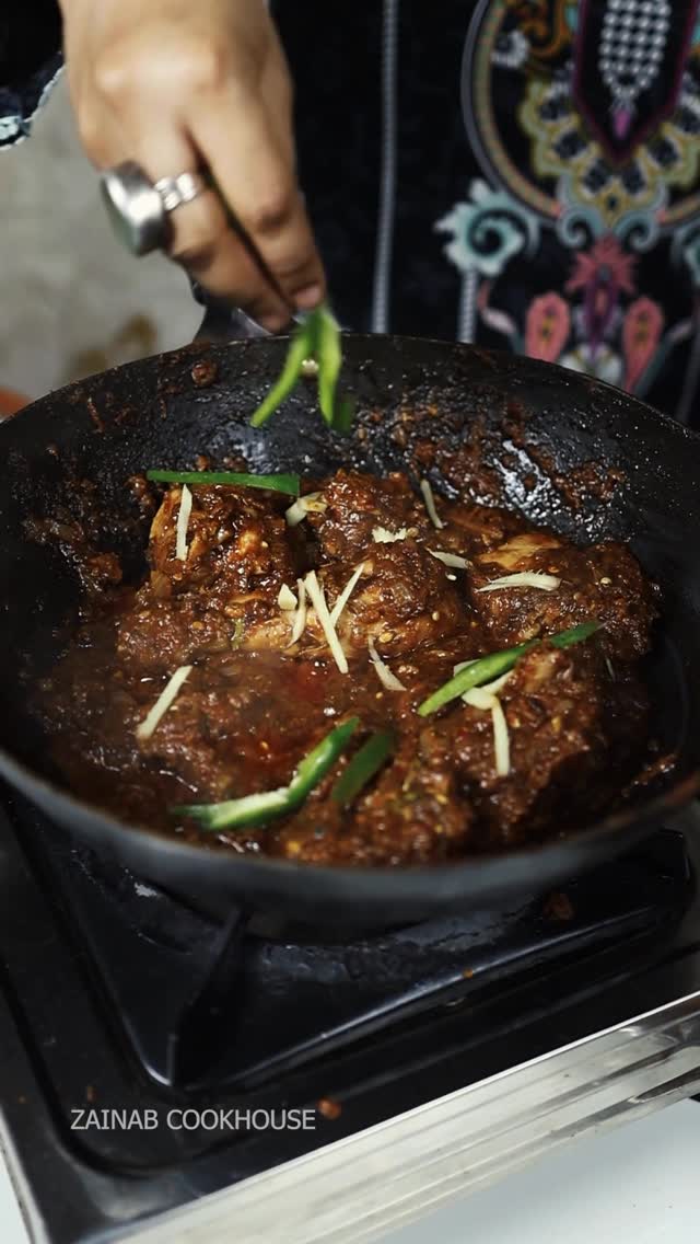 Smoky, spicy, sizzling Dhaba Style Chicken Karahi Ingredient details as below: Chicken 700 gm Ghee ¼ cup Green chilies Crushed garlic 1 Tsp Ginger juliennes 1-1/2 Tsp Cumin seeds ½ Tsp Onions roughly chopped 2 medium sizes 4 Tomatoes + 3 Onions (Boiled and grinded) Kashmiri chilli powder Less Than 1 Tsp Black pepper powder 1 Tsp Chilli flakes ½ Tsp Kadai masala powder 1 Tsp Garam masala powder Less Than 1 Tsp Yellow chilli powder ½ Tsp Chaat masala powder 1 Tsp Curd ¼ Cup Capsicum Coriander – Fennel crushed ½ Tsp Kasoori methi ¼ Tsp Hot water (I used 1 cup) #zainabcookhouse #muslimrecipes #chickenkarahi🍗🍴 #dhabachicken