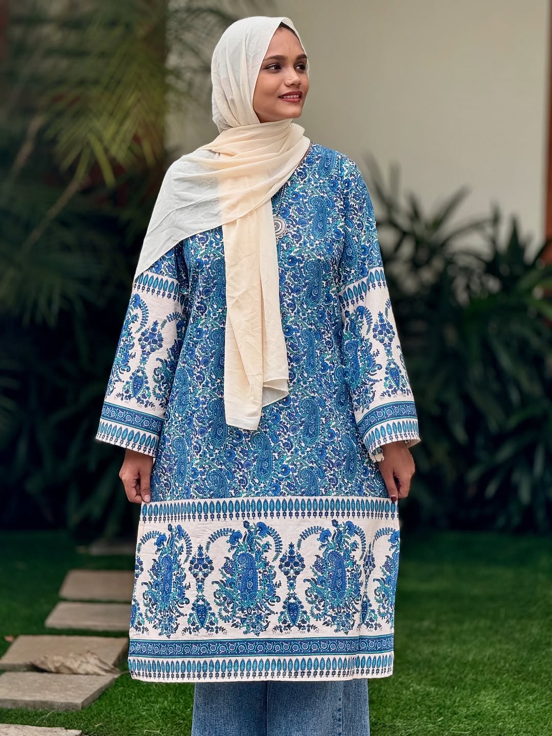 Sold Out🚫 Designer Long kurti available❤️ All sizes will customised 📏 Dm for Order 💌 CODE : M020 printed kurti, casual wear, modest fashion, floral print top, comfortable outfit, everyday style, hijab fashion, denim and kurti look, ethnic casual, Melak Clothing #MelakClothing #KurtiStyle #PrintedKurti #FloralKurti #modestfashıon