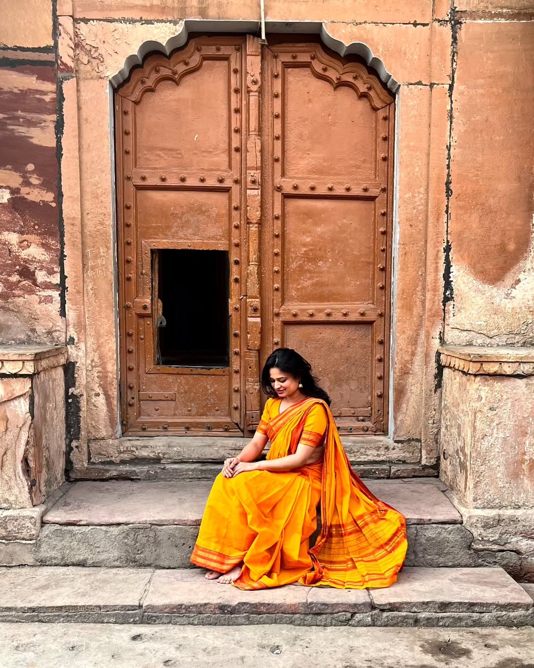 🧡 💛 🧡 Out of all the stories heard at Vrindavan, my favourite was the reason behind interrupting darshan of Banke Bihari ji every few minutes by curtains because he is a child and might accompany his devotees out of the temple as he once did before 🤠Made my heart overflow with so much love. There's no place more incredible than the hearts of Krishna Devotees in Vrindavan. 🌼 #vrindavan #bankebihaari #radheradhe #orangesaare