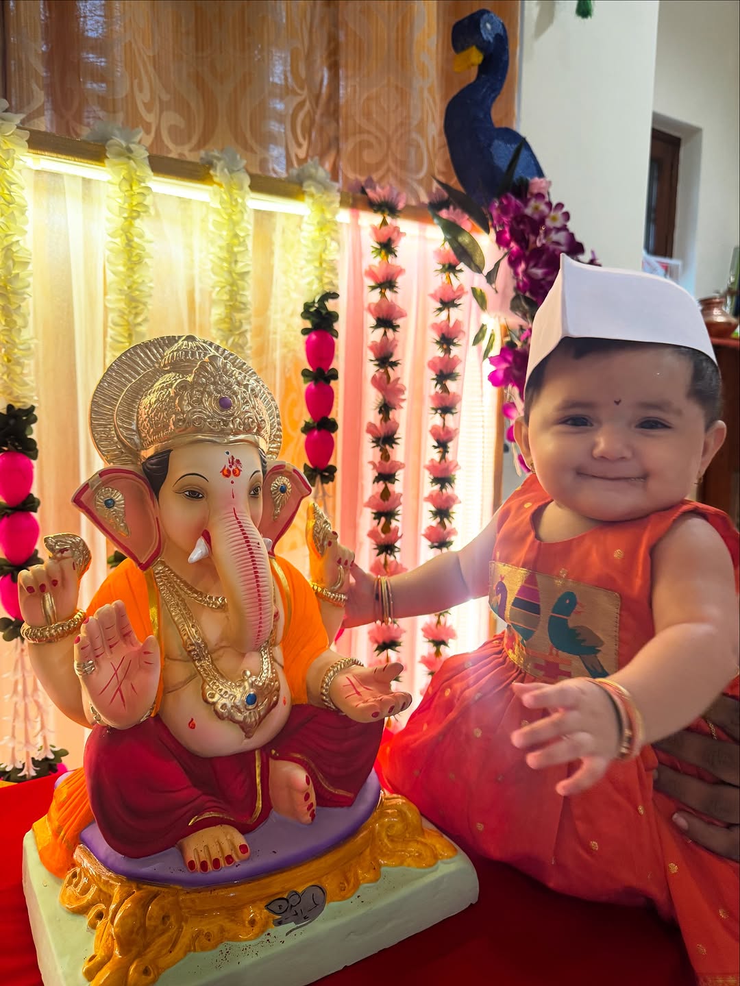 Our little modak welcoming Bappa with the brightest smile! ✨ 🙏 Outfit love: @meemora_clothing – perfect blend of comfort & tradition 💕 #ganpatibappamorya #ganpatibappa #festivelook #babyfestivelook #traditionallook #babyfashion #modaklove #ganeshchaturthi #festivevibes #babyganpatilook #teerthatales