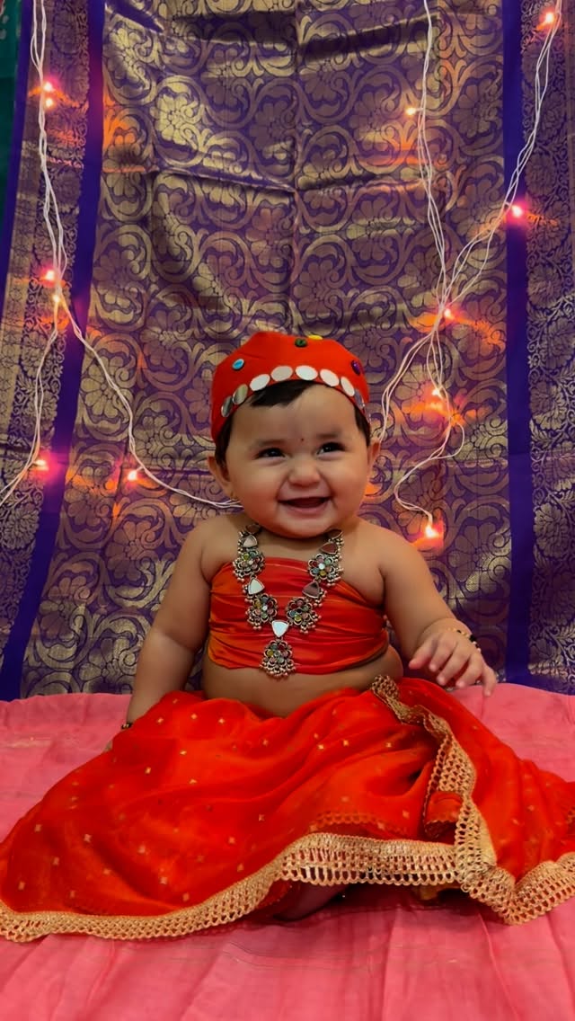 Glow brighter than the marigolds 🌼🧡 #teerthatales #instababy #explore #babygirl #fyp #babyfashion #babygram #babyootd #navratri2025 #garbanights #navratrivibes❤️ #chaniyacholi #navratrilook #kidwear #smilingbaby #viralbaby