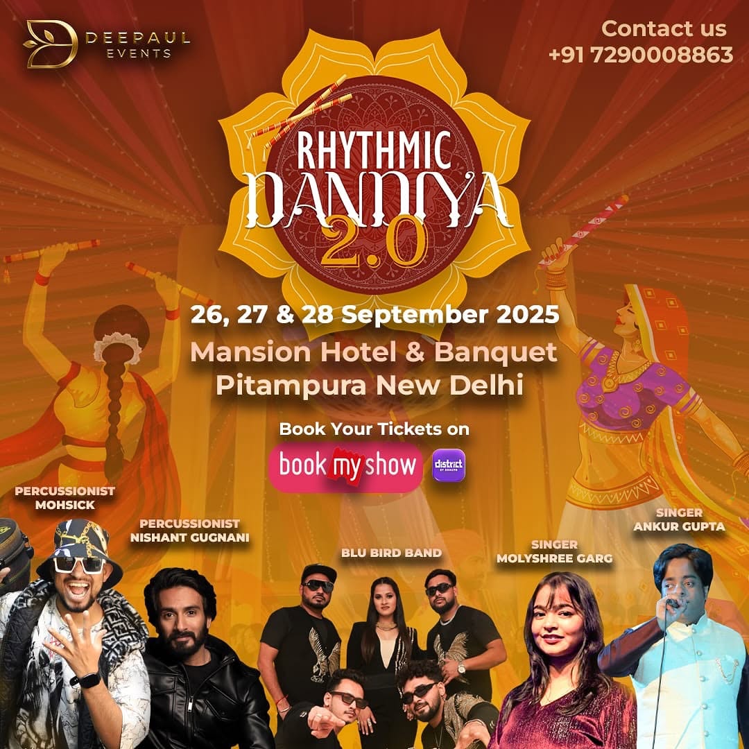 Experience Tradition & Energy Together at Deepaul Events’ Dandiya Nights in Pitampura, Delhi on 26th, 27th & 28th Sep. Venue : The Mansion Banquet, Pitampura. Always thought Navratri dandiya nights were just for Millennials, Gen X, Baby Boomers, or Gen Y? Think again! The #bestdandiyanightsindelhi are for everyone - especially the vibrant and energetic Gen Z. Experience an incredible fusion of tradition and modern beats, where culture meets celebration like never before. Join us to dance, connect, and create unforgettable memories that transcend generations! Book tickets now, check out the link in the bio to reserve your seats at the #bestdandiyanightspitampura. #RhythmicDandiya #Dandiya2025 #NavratriDelhi #DeepaulEvents #DandiyaNight #dandiyanightspitampura #dandiyanightsindelhi #dandiyaeventsindelhi #dandiyanight #navratrispecial