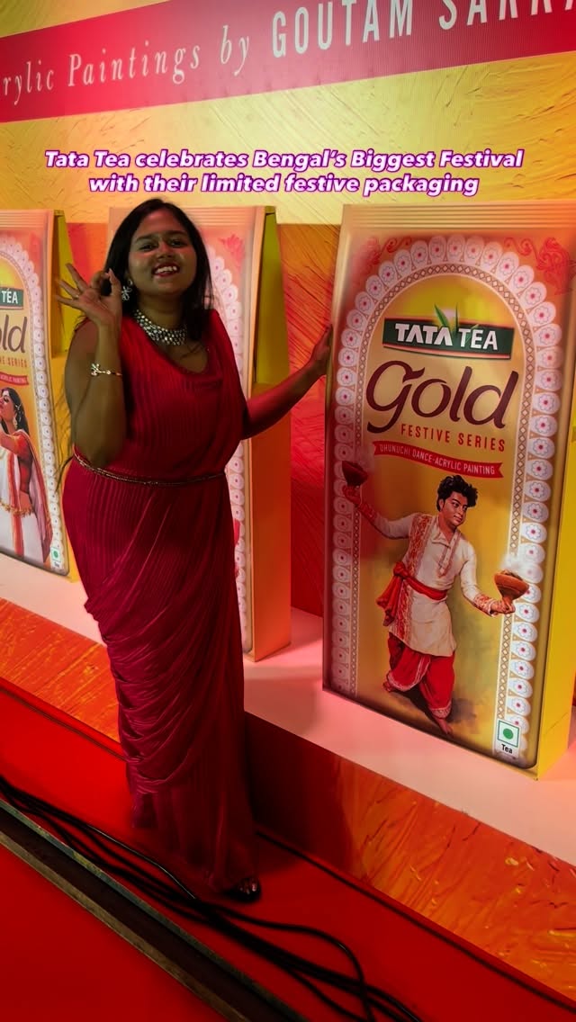 Durga Pujo isn’t just a festival, it’s an emotion and this year, @tatateagold has turned that emotion into art you can hold in your hands. From the dhaak beats of Shashti to the sindoor khela of Dashami, Bengal’s rituals come alive through limited-edition festive packs designed by renowned local artists – each one being a masterpiece in itself. Unveiled at Taj Bengal, these packs celebrate the rhythm, colours and spirit of Pujo while making your everyday cup of tea feel extra special. These limited packs are available only for Durga Pujo, so hurry up and gift the perfect essence of pujo to your friends, family and loved ones. #banglarshilpishojjitopujo #tatateagold #tatateagoldpujo #pujowithtatateagold #the_foodielady #viralreels #fyp #chailovers #tealovers #tatatea #durgapujo #durgapujo2025 #bangaliremotion #bengali #trendingreels #chakhor #chailover