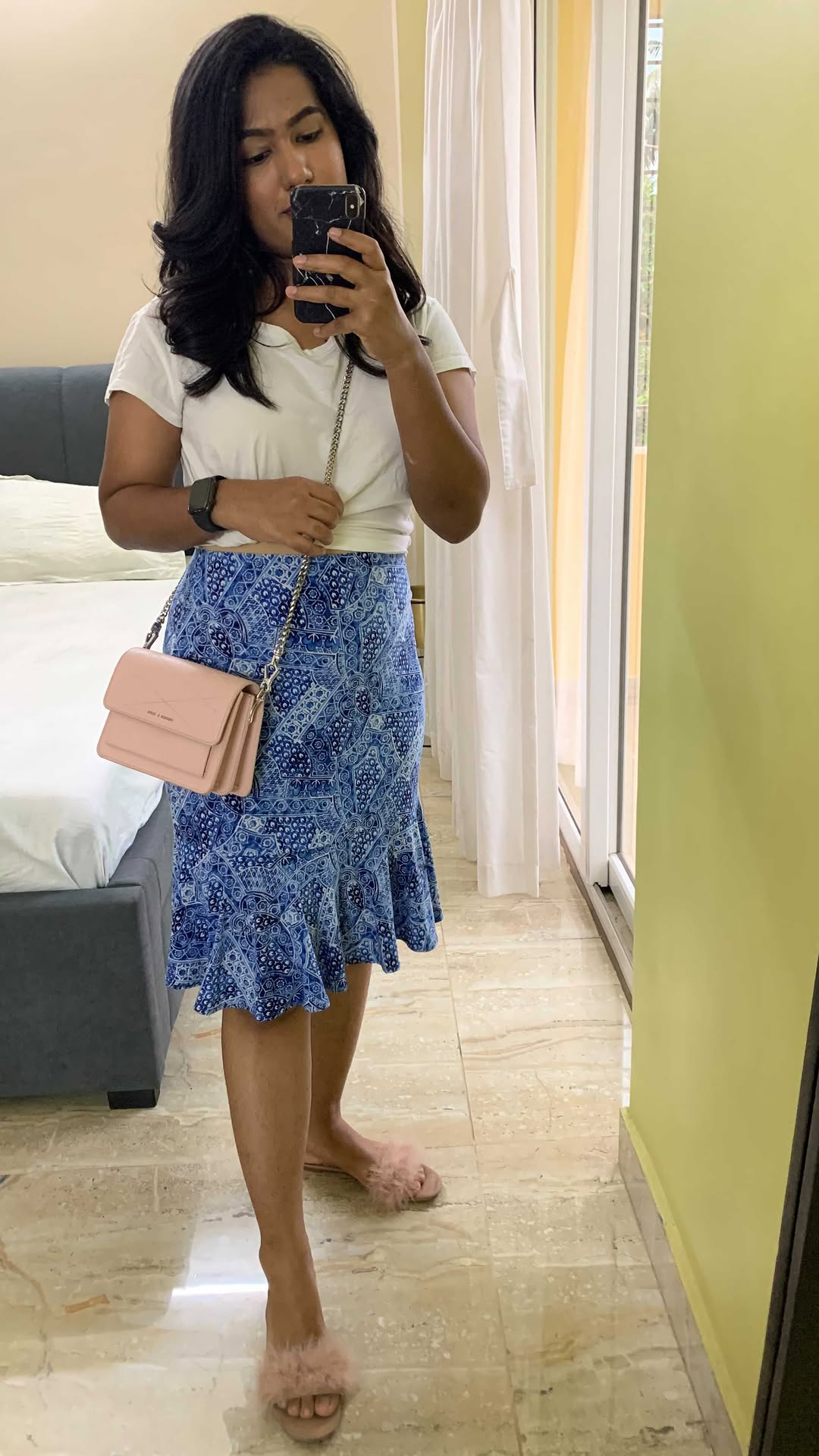 Top - @hm Skirt - @chaps Bag - @charleskeithofficial Footwear - @hm . . . . . . #ootdchennai #ootdindia #printedskirt #blueskirt #outfitoftheday #easyoutfit #indianfashion #outfitinspo #explorepage #reelsinstagram #reelsindia #beachoutfit