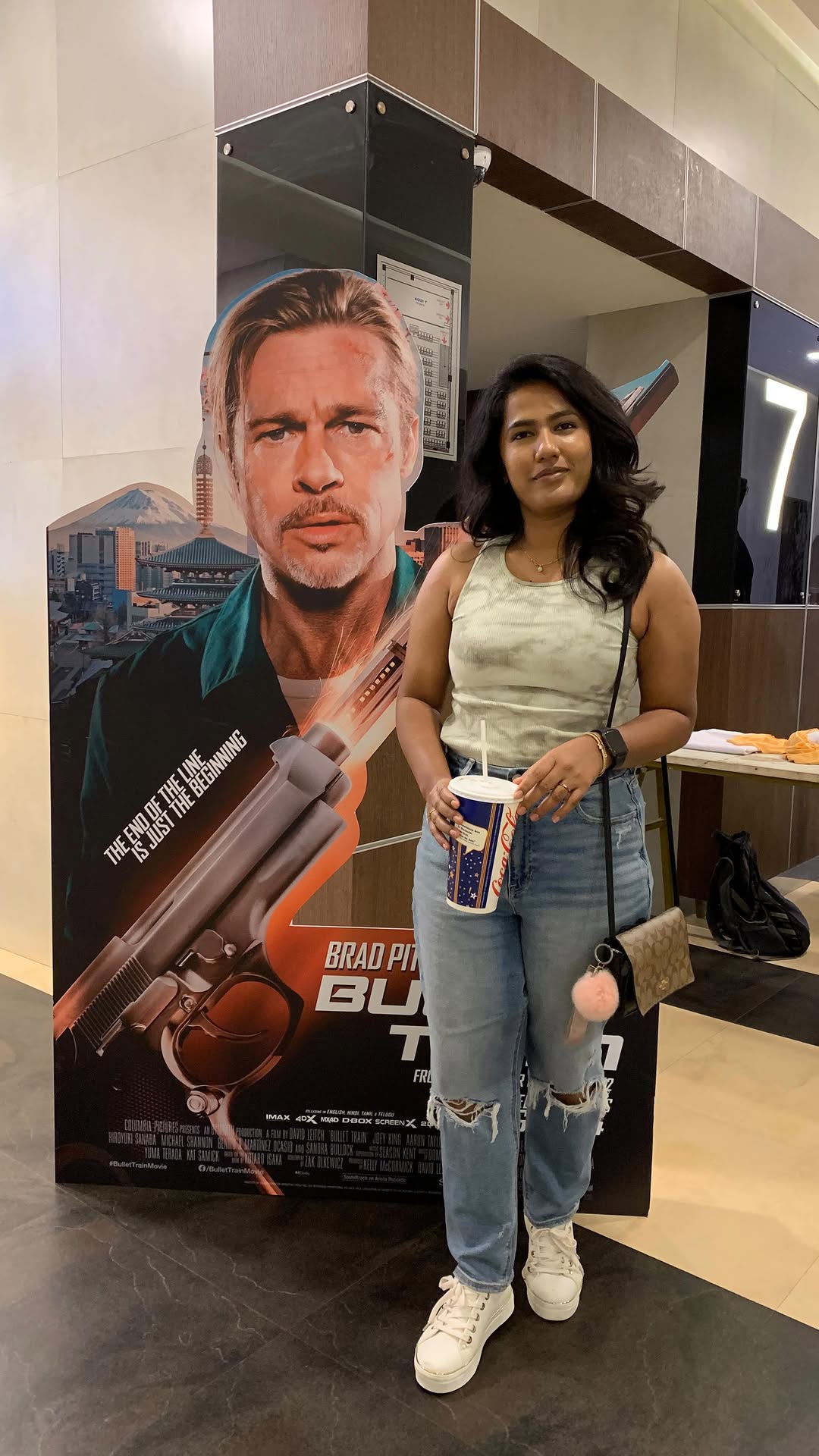 I was invited to the Hollywood movie premiere @bullettrainmovie..it was nice and I felt so special! <3 Wow, what a movie Bullet Train was! Brad Pitt and Sandra Bullock awesome as ever. Must watch @thebullettrain next weekend. and yeah will you travel 2 hrs to watch a movie?? . . . . . #bullettrain #sonypictures #bullettrain4aug #chennaiinfluencer #minivlog #ootdindia #movienight #movienews #movienight🎬 #reels#moviepremiere #explorepage #reelitfeelit #trending #hollywoodmovies #outfitoftheday #rippedjeans #croptop #reelsindia #reelsinstagram #chennainews